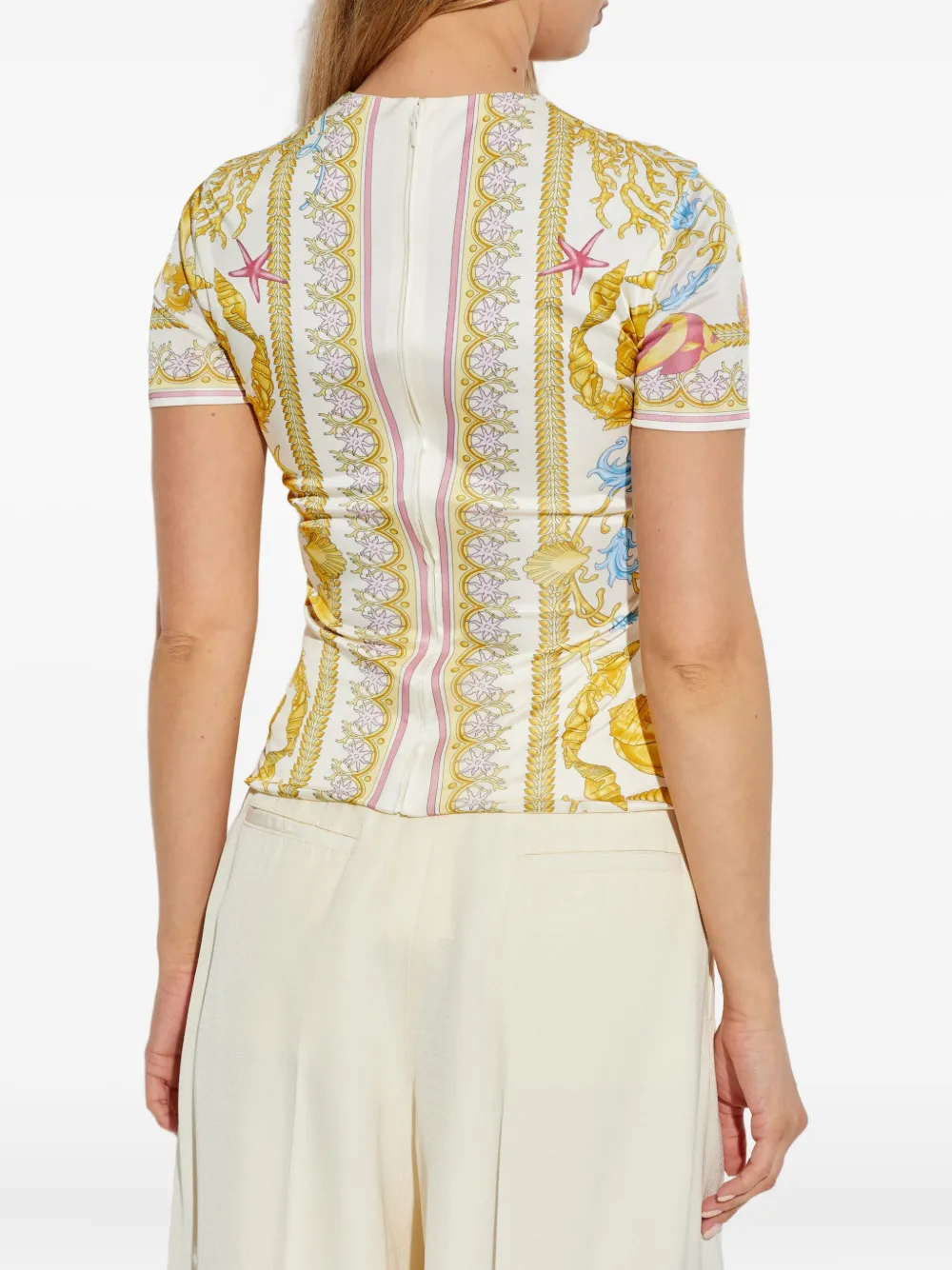 Драпированный топ с декоративной булавкой VERSACE, белый