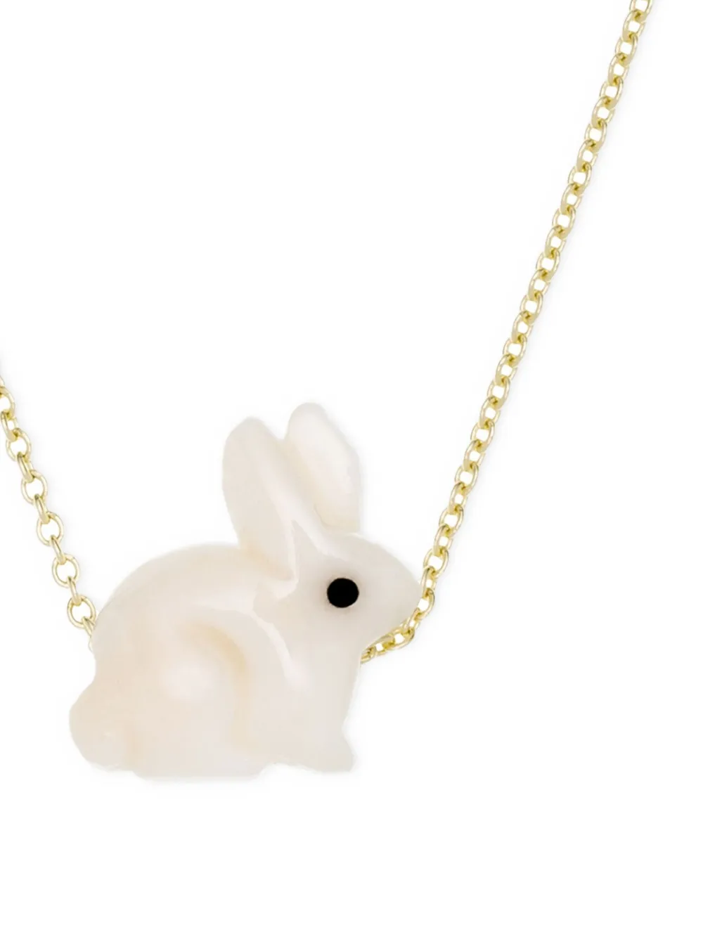 Подвеска-кролик из белого коралла с золотистой отделкой, полированной отделкой из желтого золота 9 карат, пружинной застежкой, регулируемым дизайном