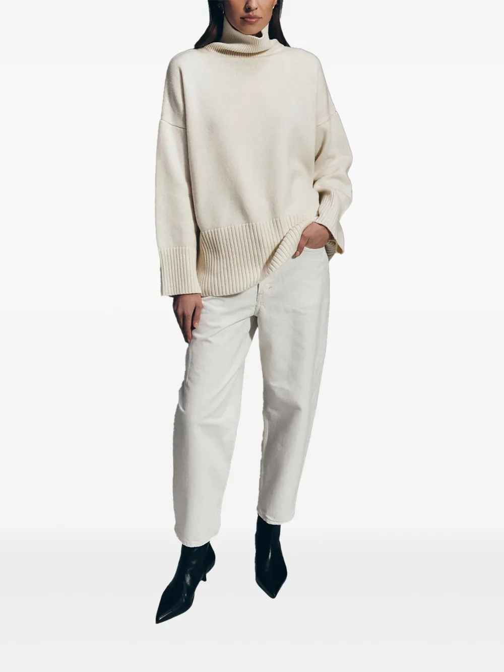 Свитер Vela с подолом в рубчик ETHER, белый