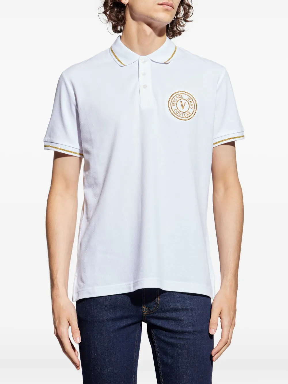 Рубашка-поло с вышитым логотипом Versace Jeans Couture, белый