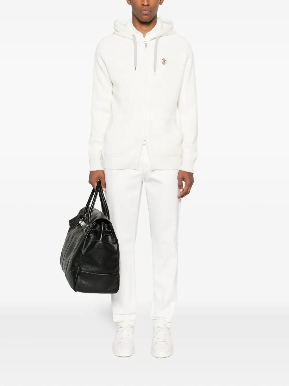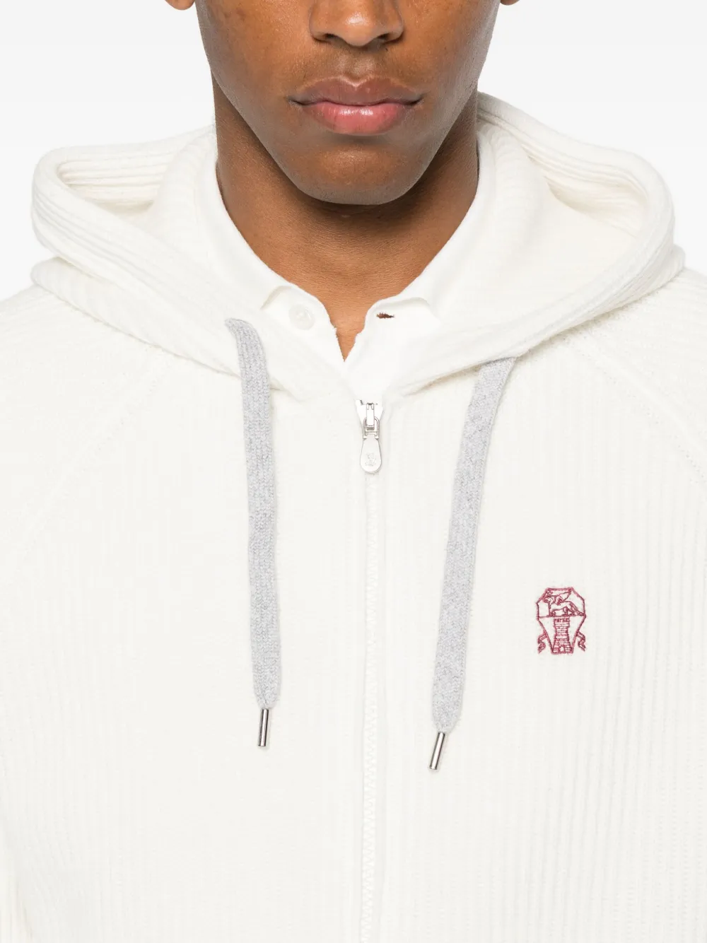 Кардиган на молнии с капюшоном Brunello Cucinelli, белый