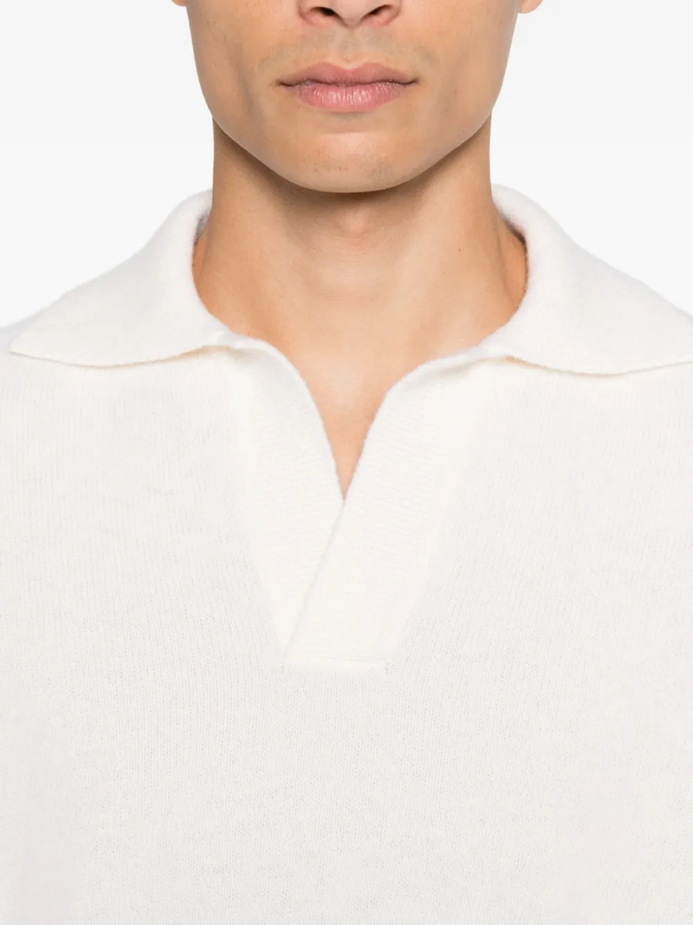 Шерстяной свитер с воротником поло Roberto Collina, белый