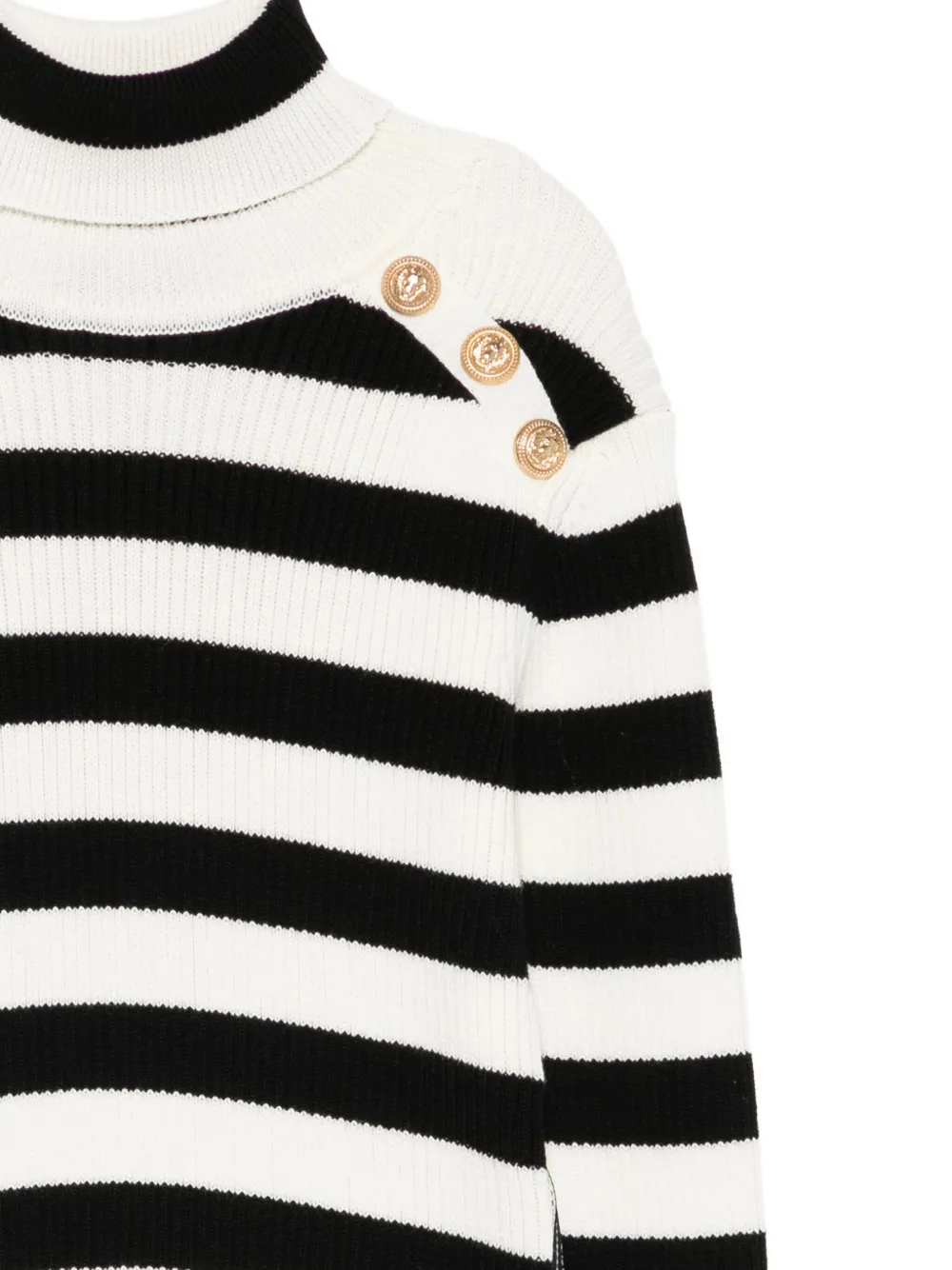 Полосатый свитер с высоким воротником Balmain Kids, белый