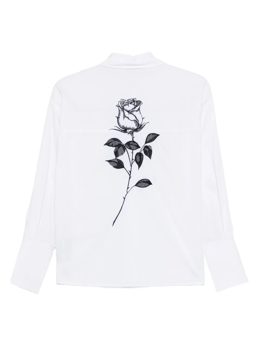 Мотив белой розы, длинные рукава, застежка на пуговицы спереди, квадратный фасон