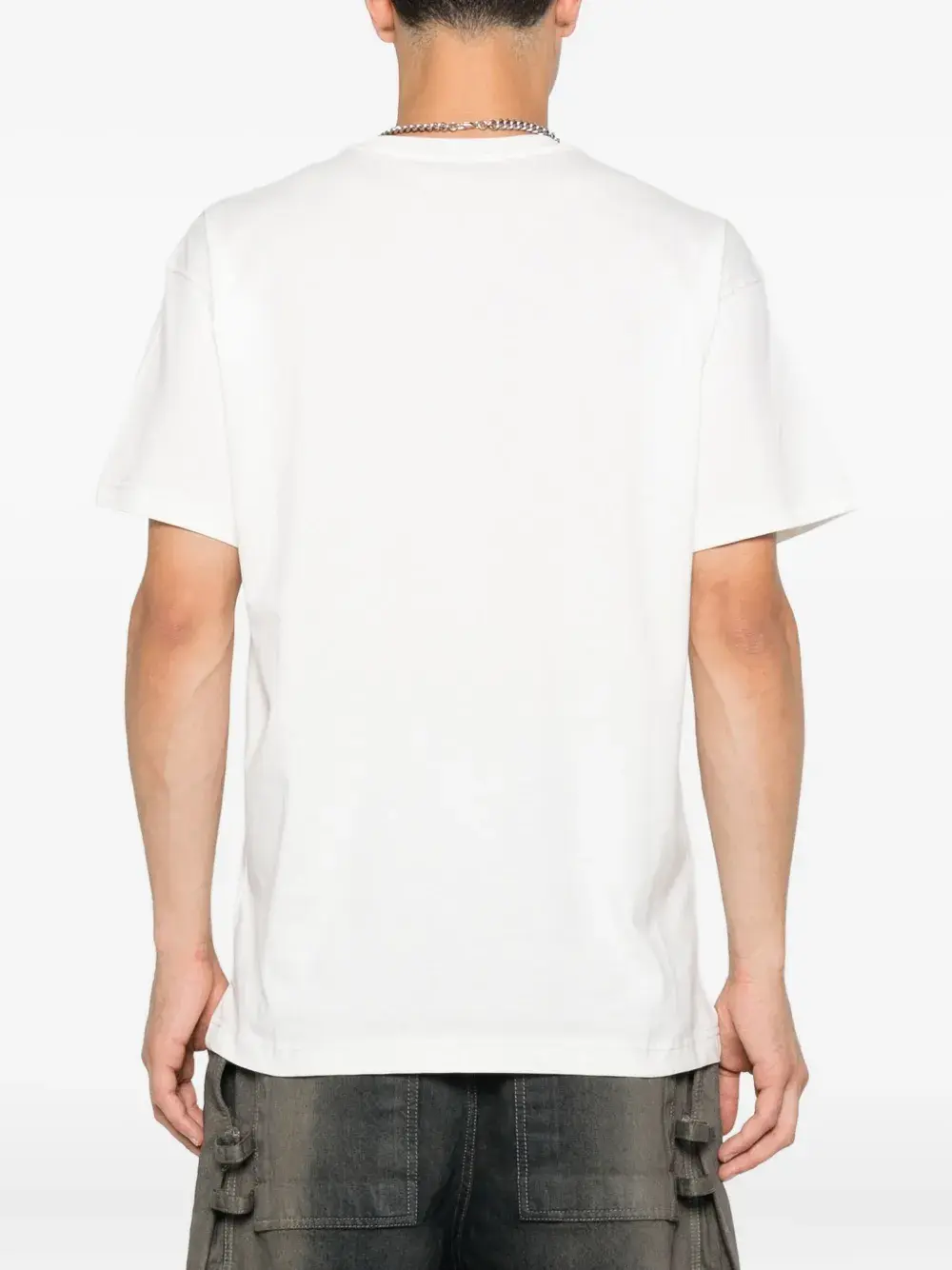 Белый хлопок с короткими рукавами, круглым вырезом и графическим принтом, эффектом потертости