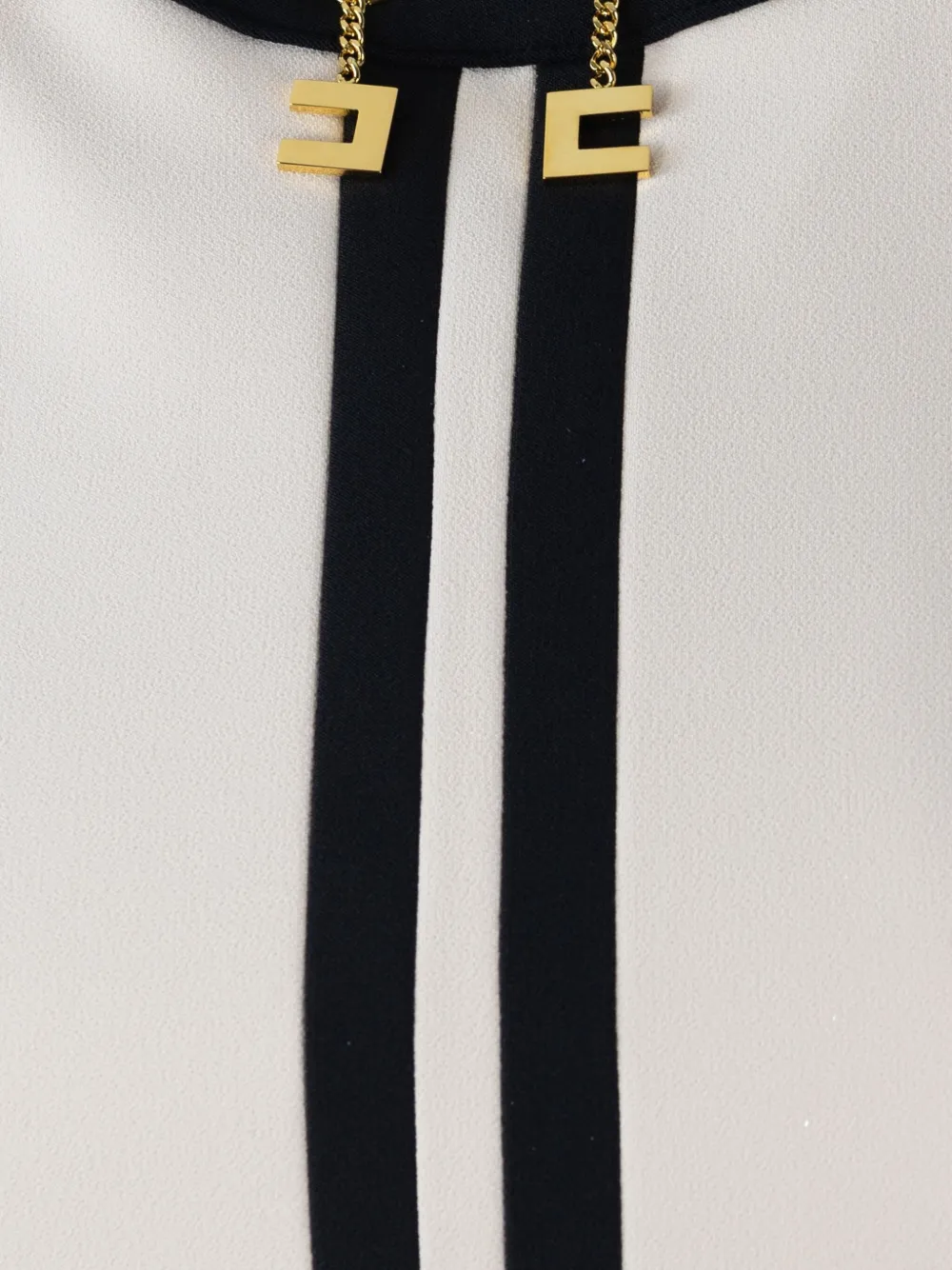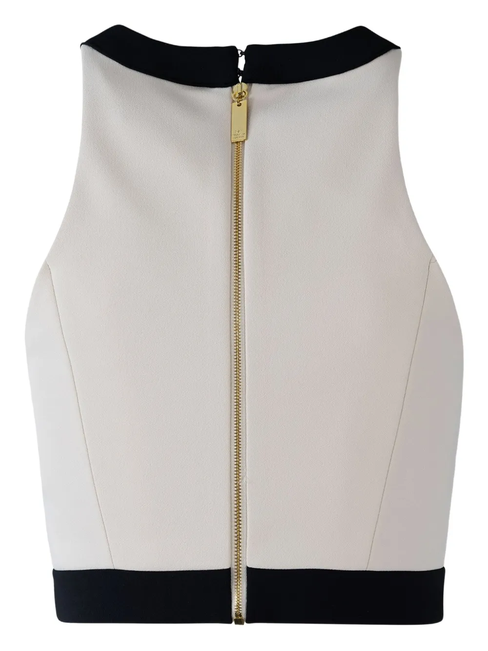 Белая черная отделка центральная застежка-молния золотистая цепочка без рукавов