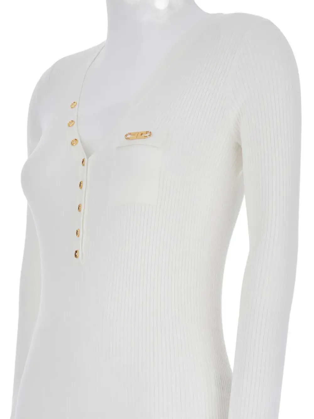 Белая ребристая текстура, длинные рукава, V-образный вырез, золотистые пуговицы