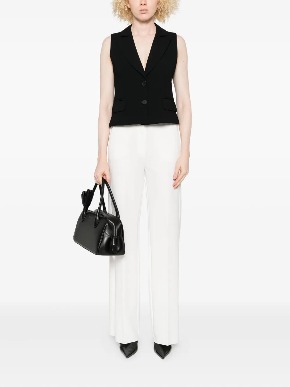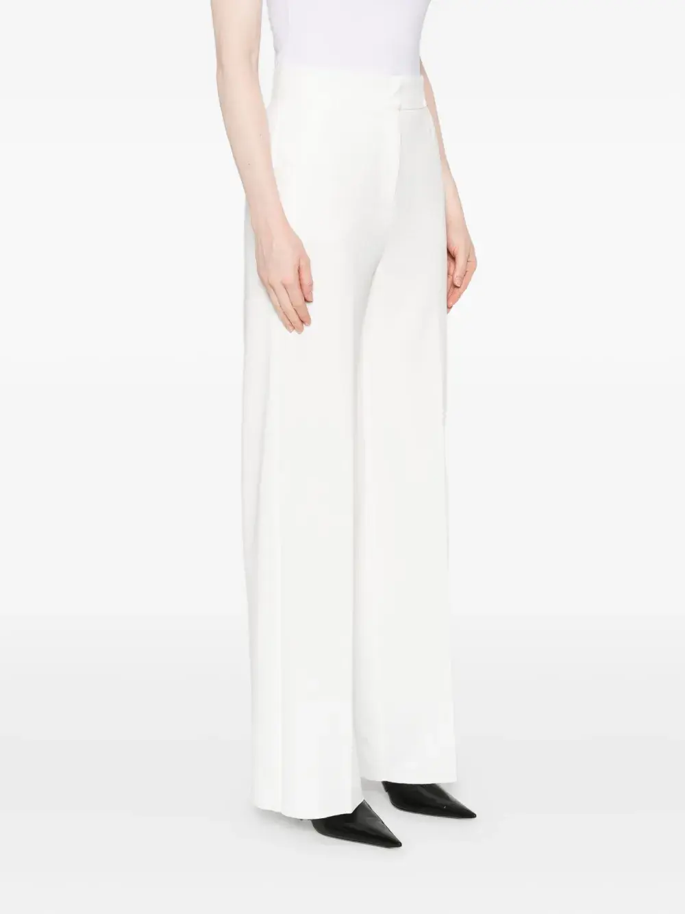 Белые широкие брюки с высокой талией и прямым подолом