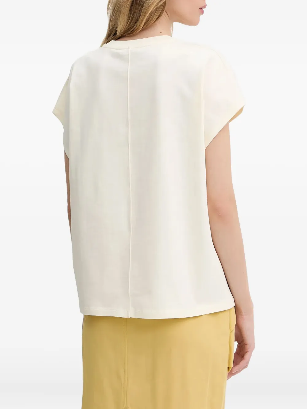 Короткие рукава бежевого цвета, вышитая деталь, круглый вырез горловины, коричневая вышивка