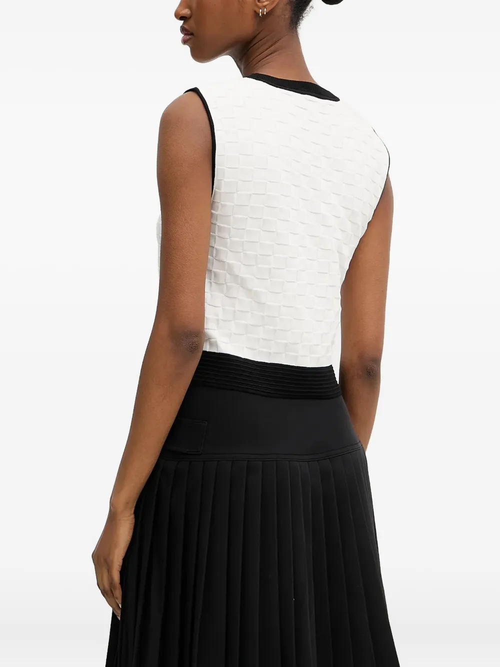 Стеганая текстура белого цвета с черными панелями, круглый вырез, без рукавов