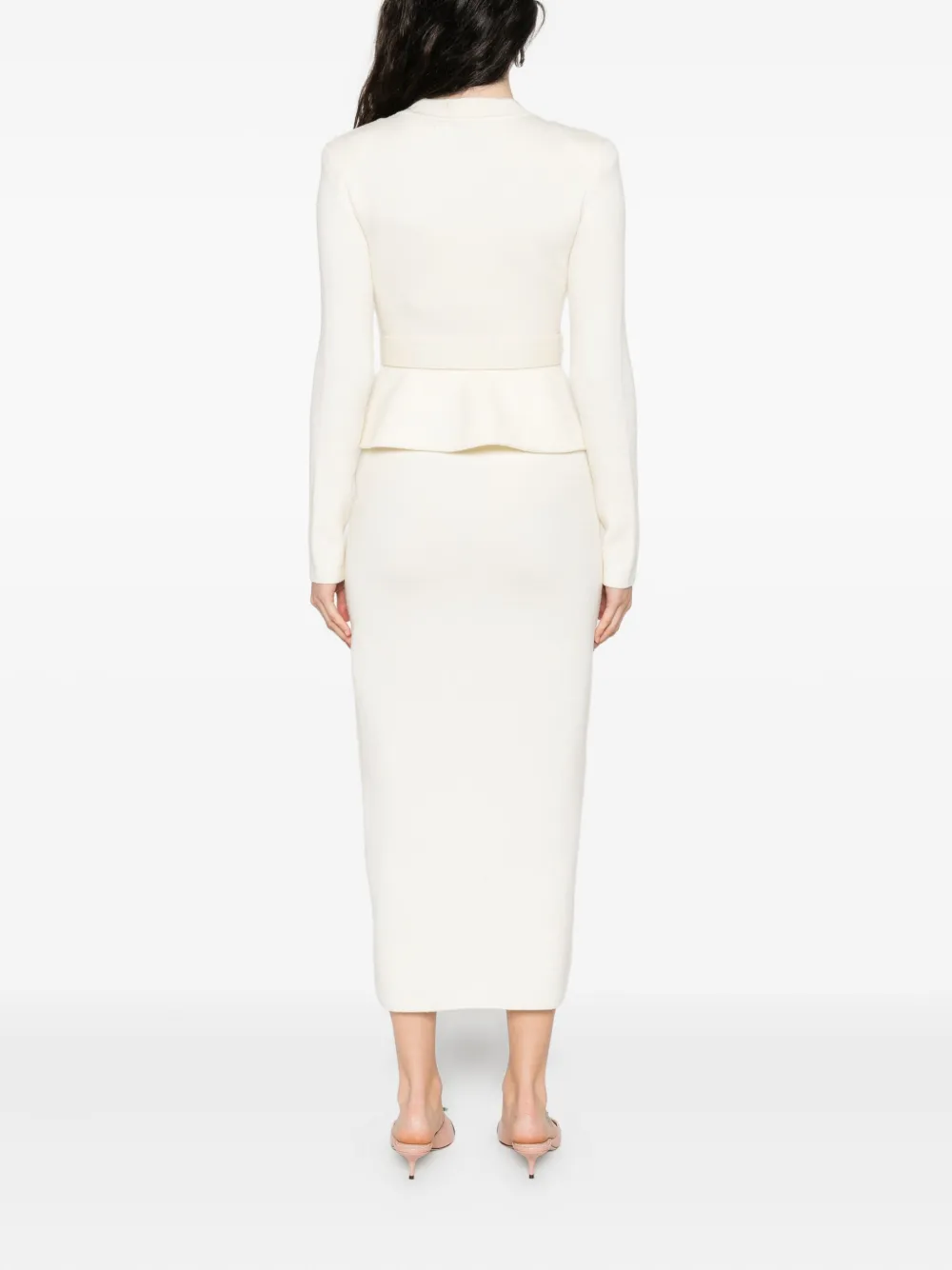 Воротник, украшенный белыми кристаллами, пояс на талии, длинные рукава, длина миди, застежка на пуговицы спереди