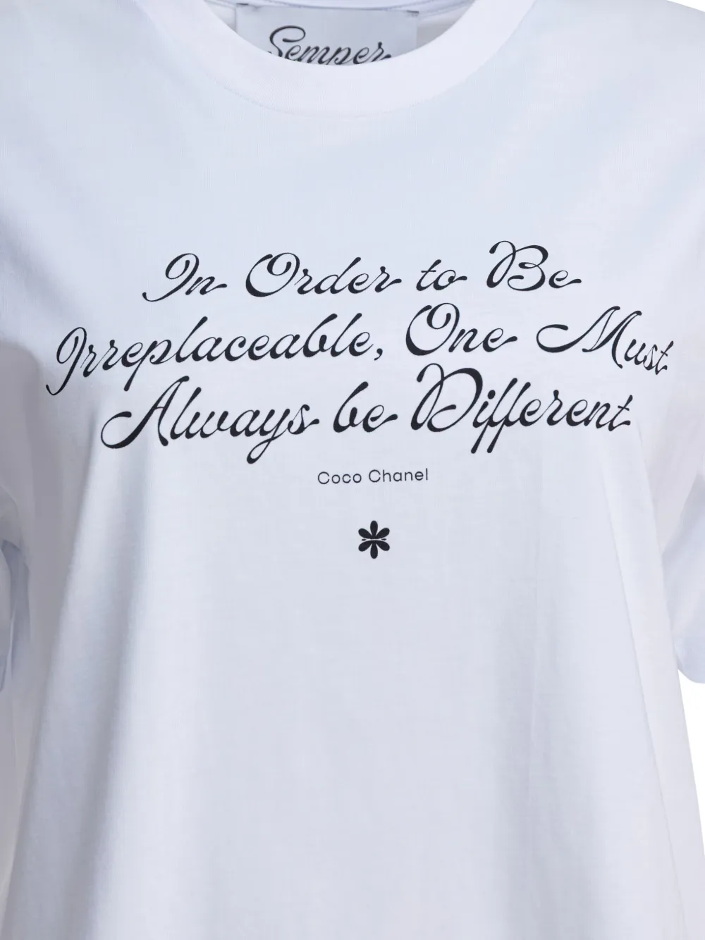 Белый круглый вырез горловины с короткими рукавами и принтом цитат из хлопка