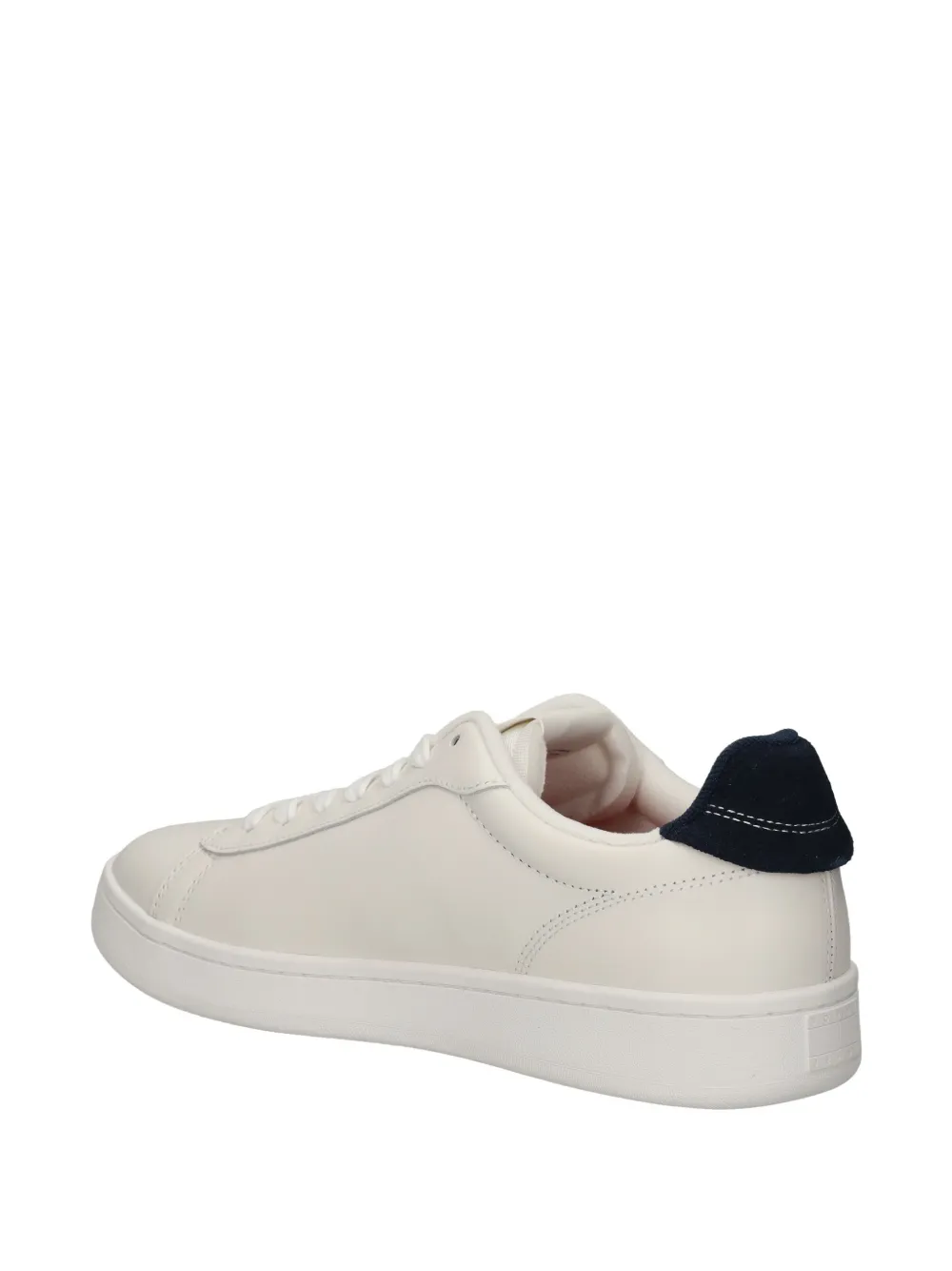 Верх из кожи кремового цвета, логотип-флажок, темно-синий каблук, шнуровка, плоская подошва