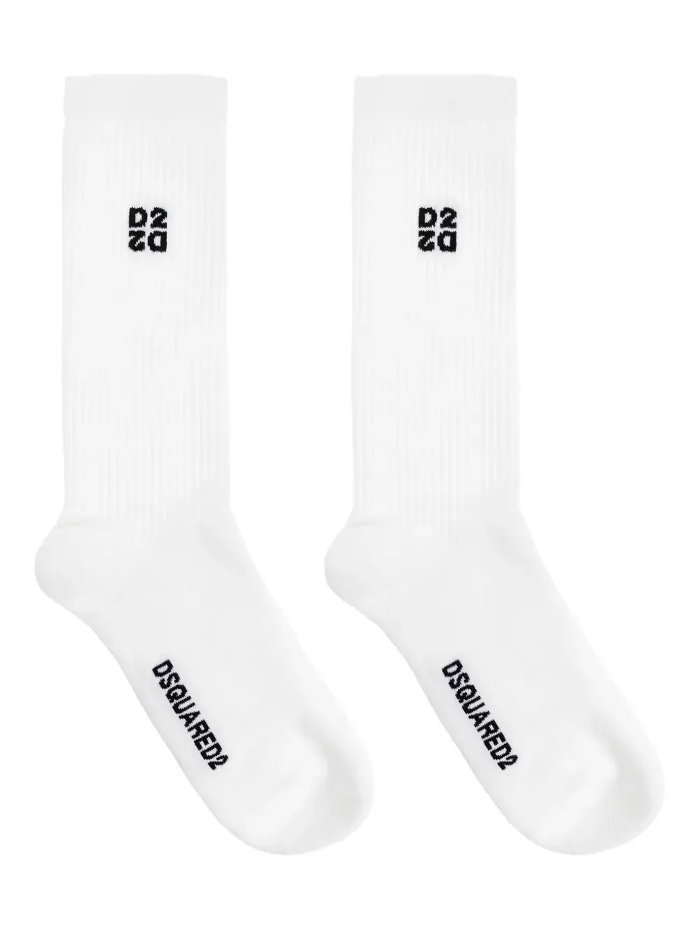 Носки в рубчик с вышитым логотипом DSQUARED2, белый