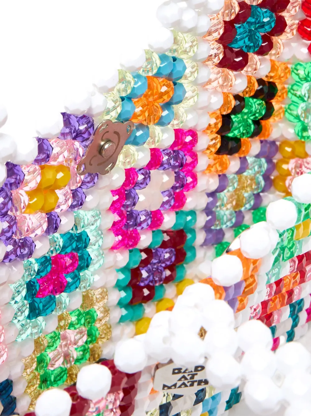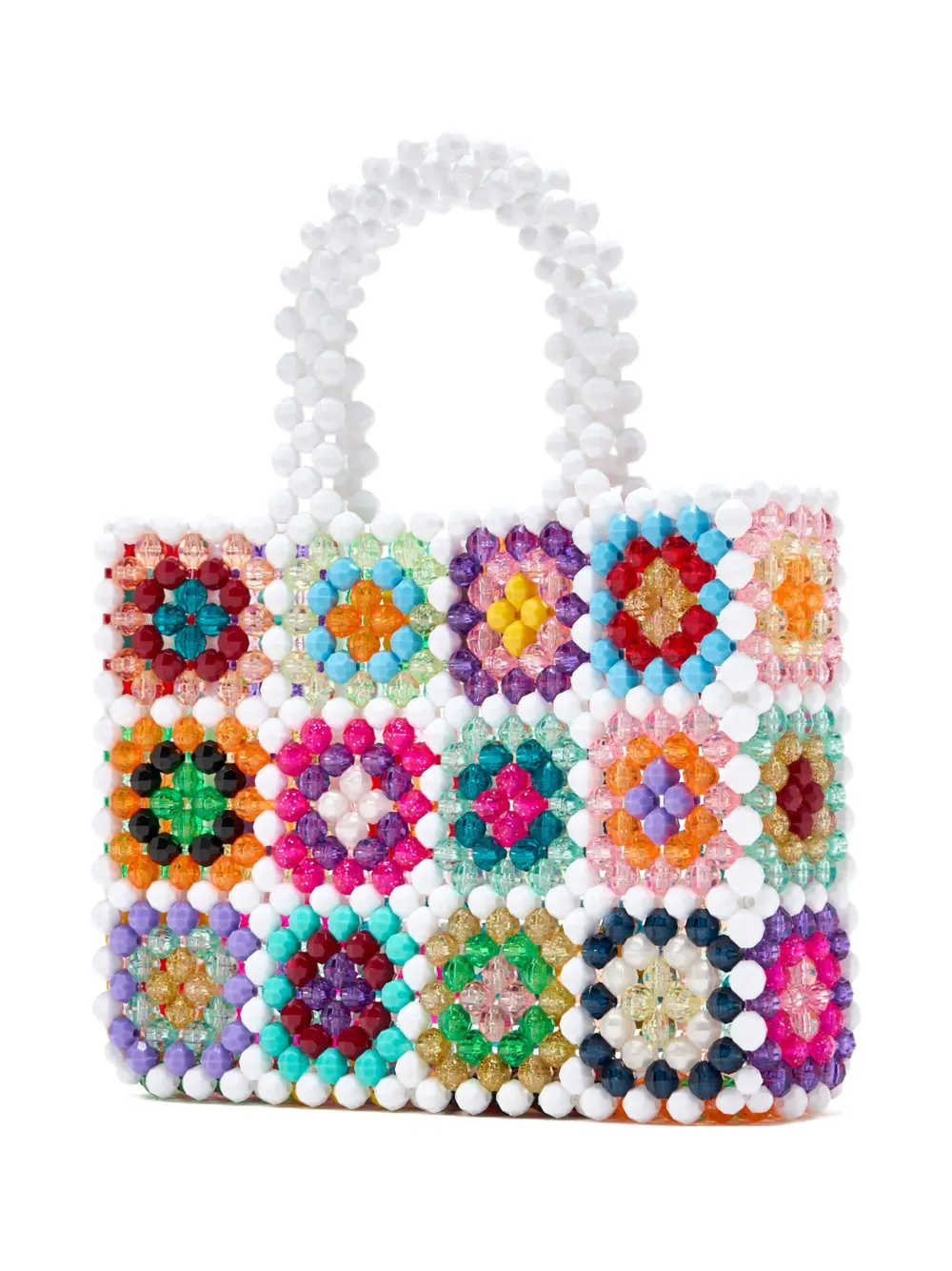 Белые разноцветные бусины, верхние ручки, магнитная застежка, квадратная форма