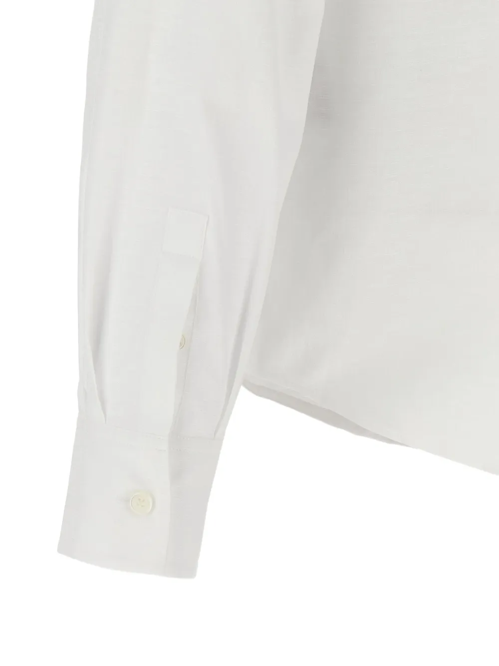 Белый жаккардовый узор Gancini, воротник на пуговицах, длинные рукава с манжетами, нагрудный карман, застежка на пуговицы спереди