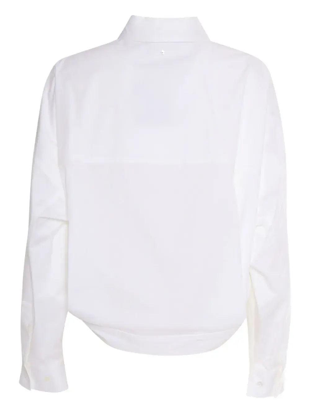 Белый хлопок, длинные рукава, застежка на пуговицы, накладной карман, классический воротник