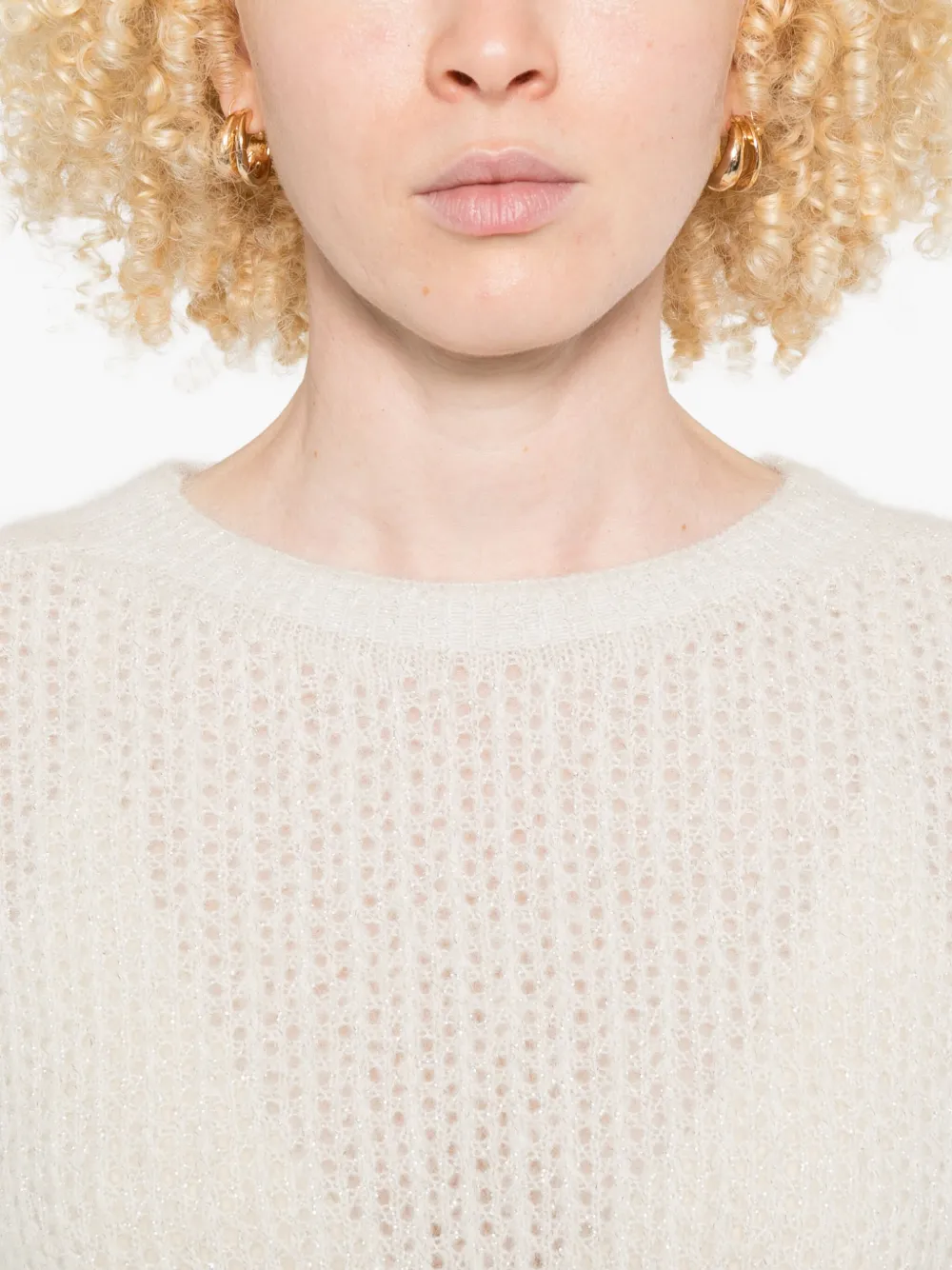 Белый ажурный трикотаж с длинными рукавами и круглым вырезом