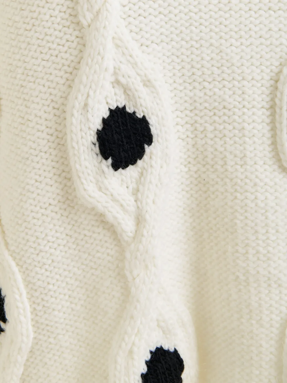 Белая косичная вязка с заниженными плечами и ребристыми отделками