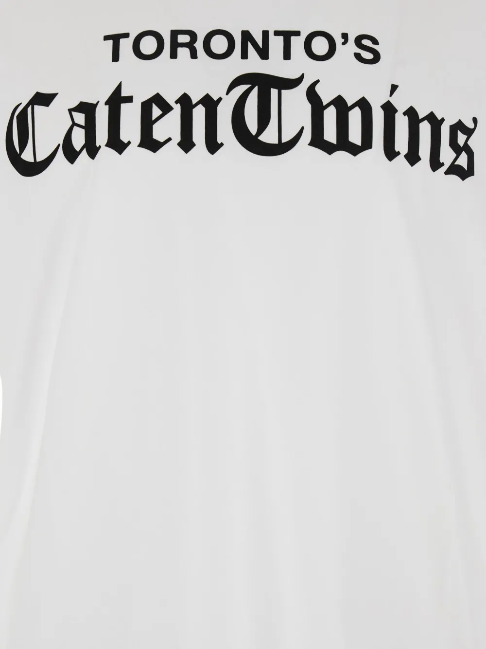 Белая футболка с короткими рукавами и круглым вырезом, графический принт «Toronto's Catentwins»