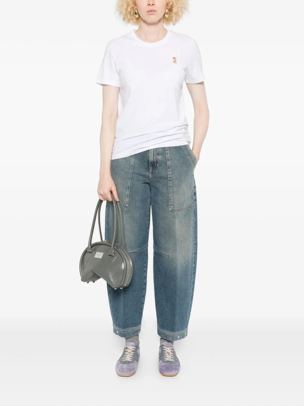 Футболка Standing Fox с вышивкой Maison Kitsuné, белый