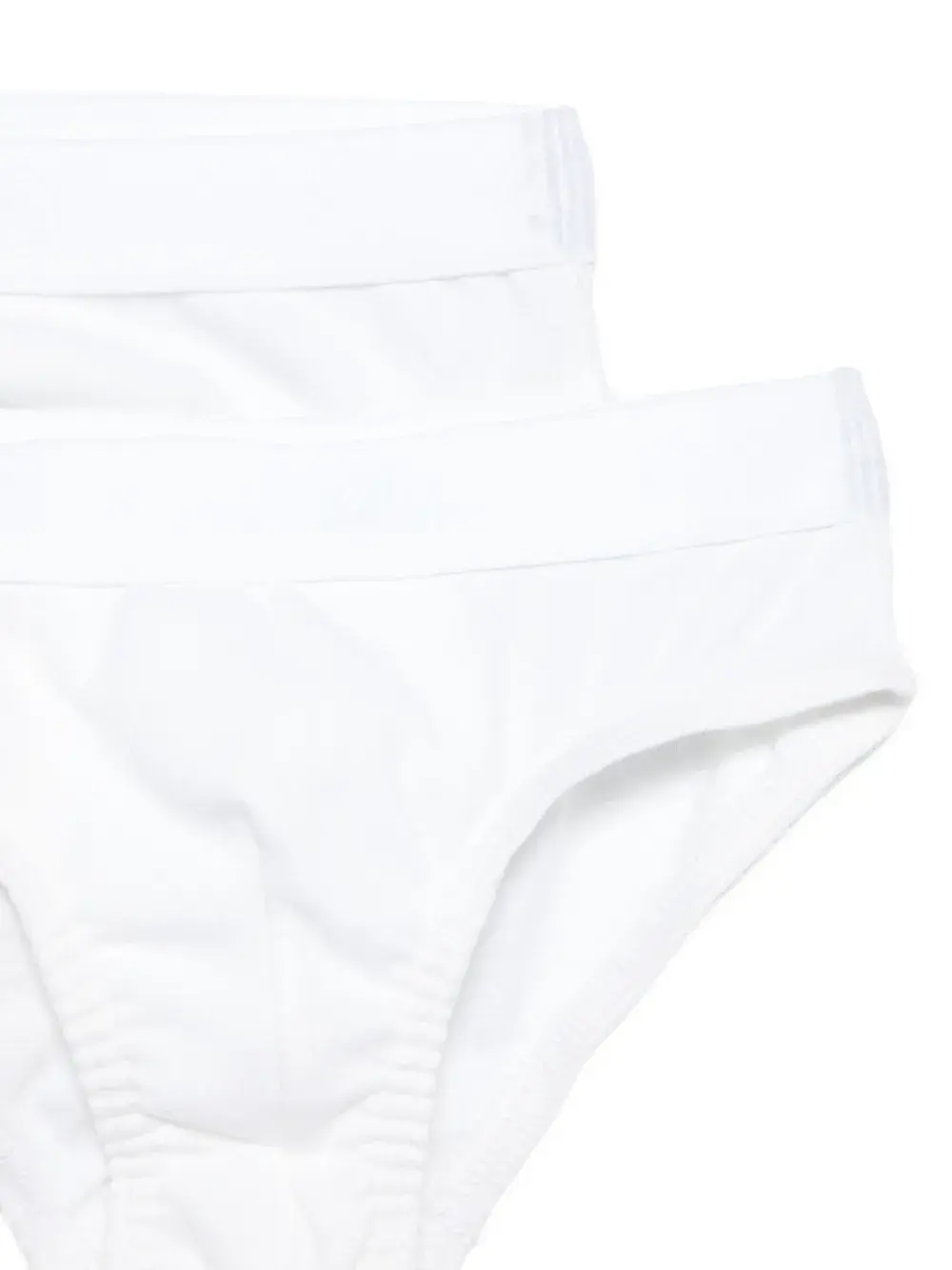 Белая ребристая фактура, низкая посадка, эластичный пояс, плоские швы, упаковка из двух пар. Напоминаем, что эту вещь следует примерять поверх собственной одежды.