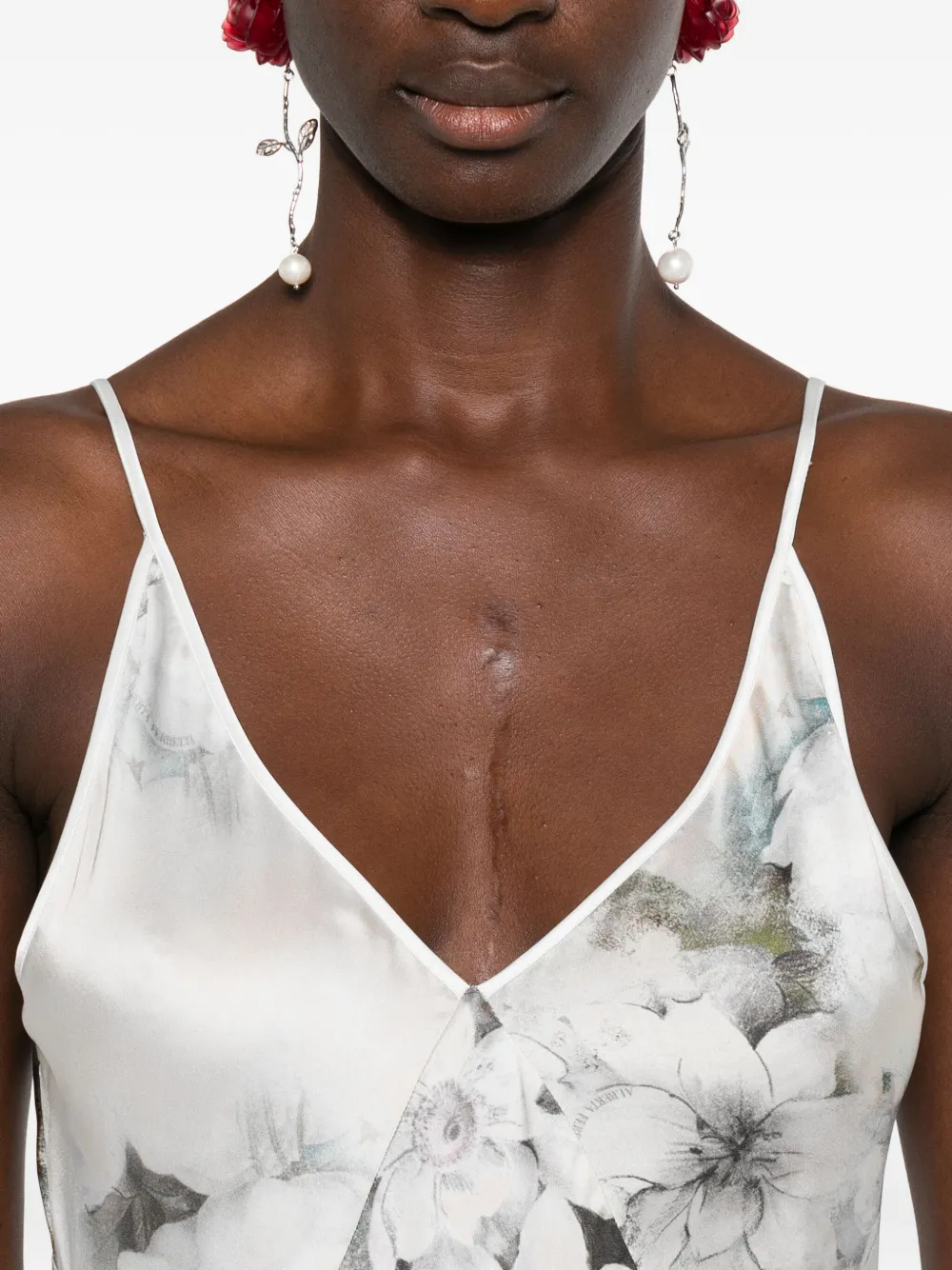 Платье-комбинация с цветочным принтом Alberta Ferretti, белый