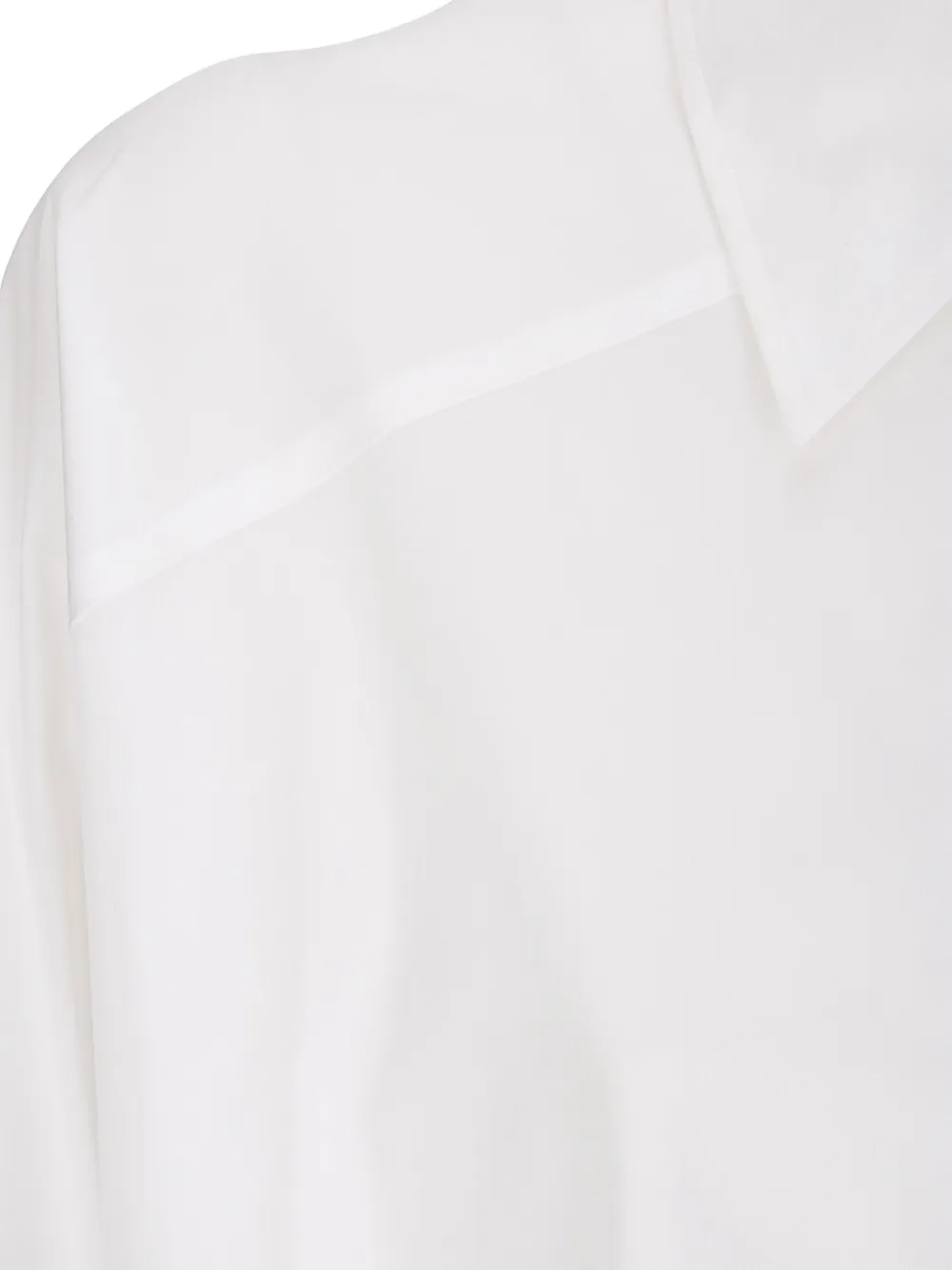 Белый воротник с длинными рукавами, застежка на пуговицы, кокетка на плечах