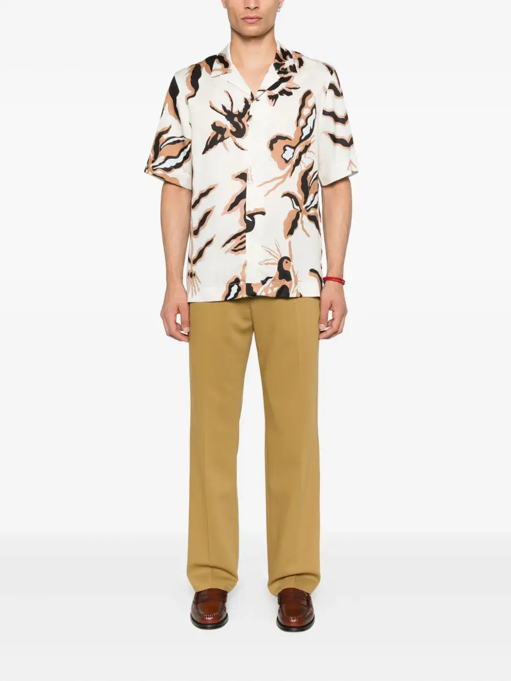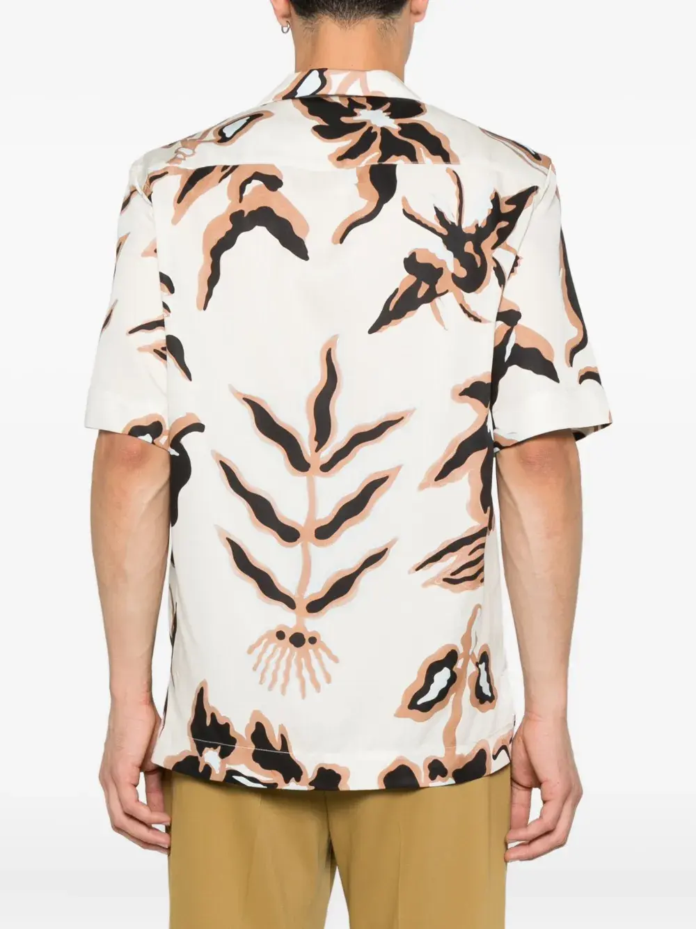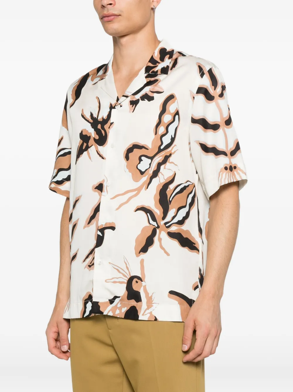 Белый геометрический принт, короткие рукава, застежка на пуговицы