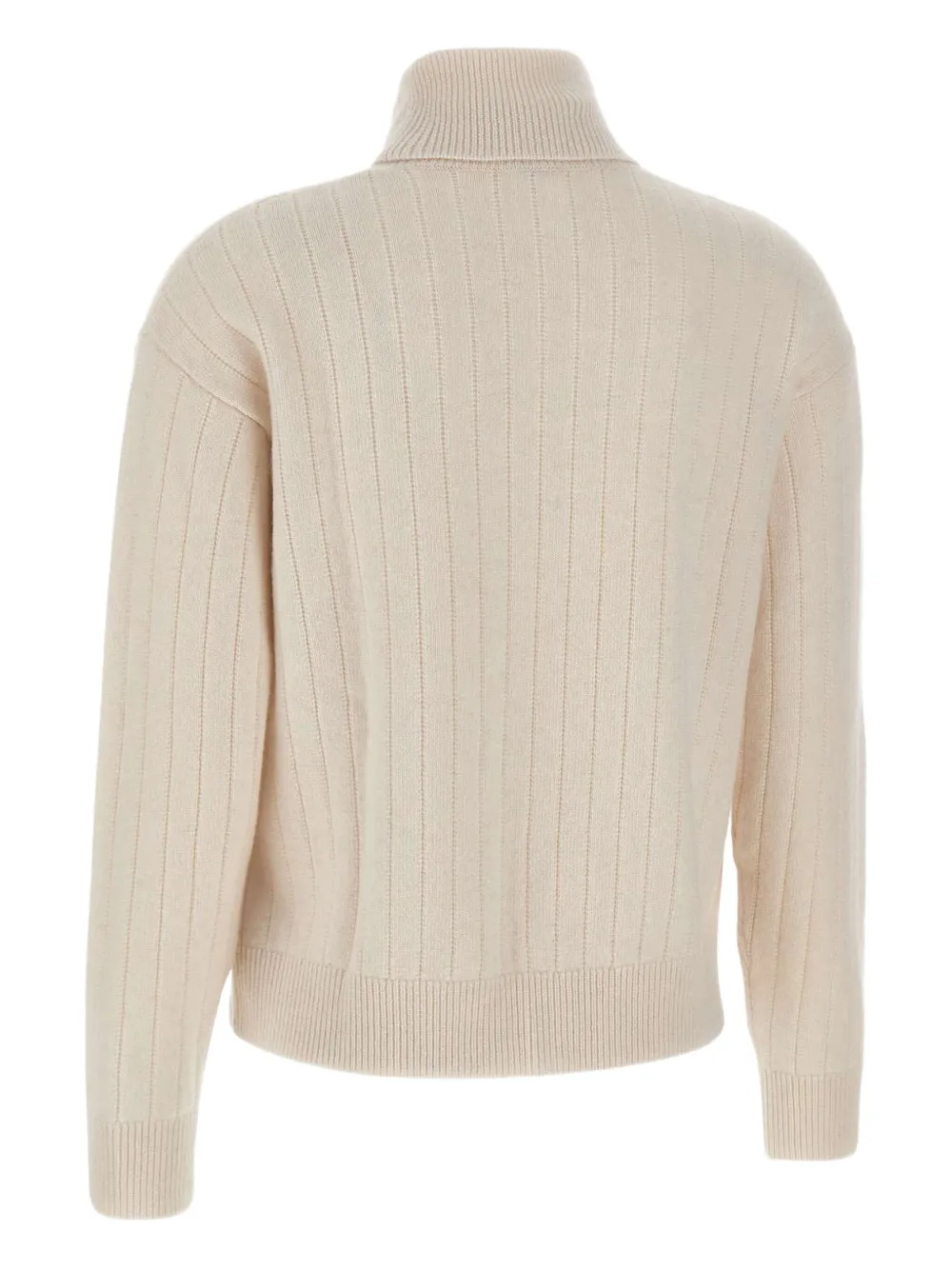 Кремовый ворот, вертикальная резинка, длинные рукава, ребристые манжеты, ребристый подол