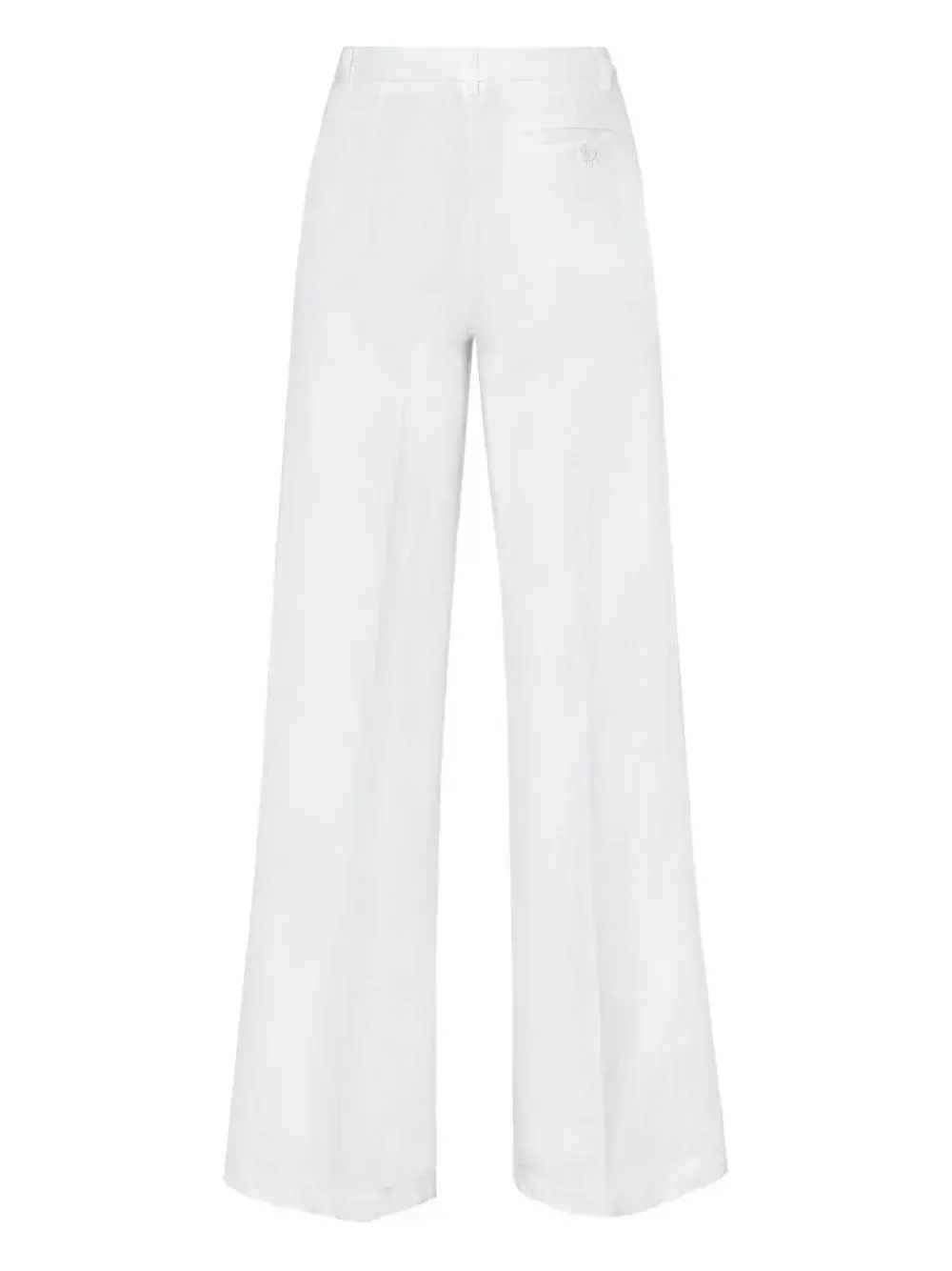 Белые широкие брюки с плоским передом, прямой подол, высокая талия