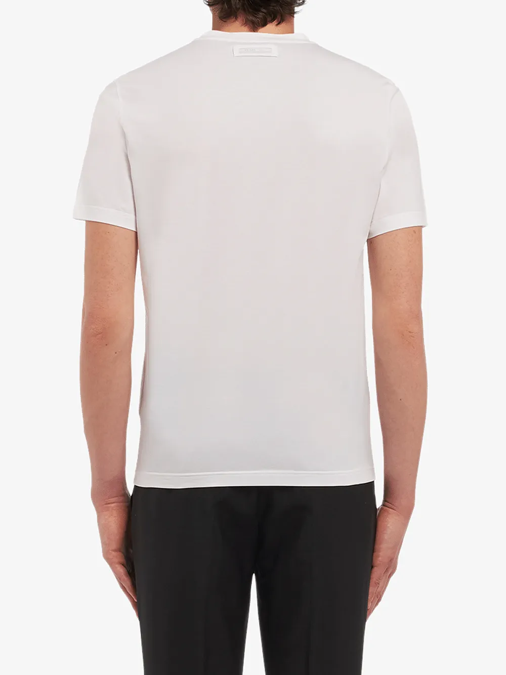 Футболка с круглым вырезом от Prada (Прада). Короткие рукава, узкий крой и прямой подол. Цвет: белый.