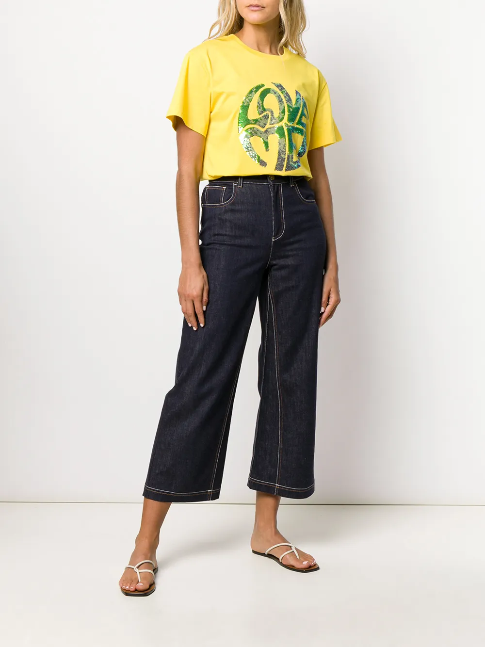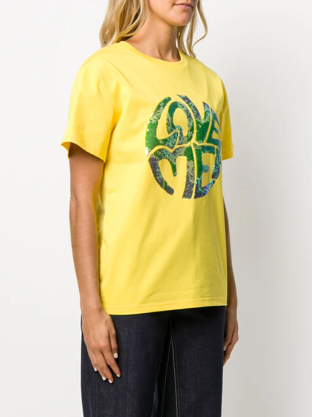 Футболка с пайетками от Alberta Ferretti. Круглая горловина в рубчик, украшение из пайеток и короткие рукава. Цвет: желтый.
