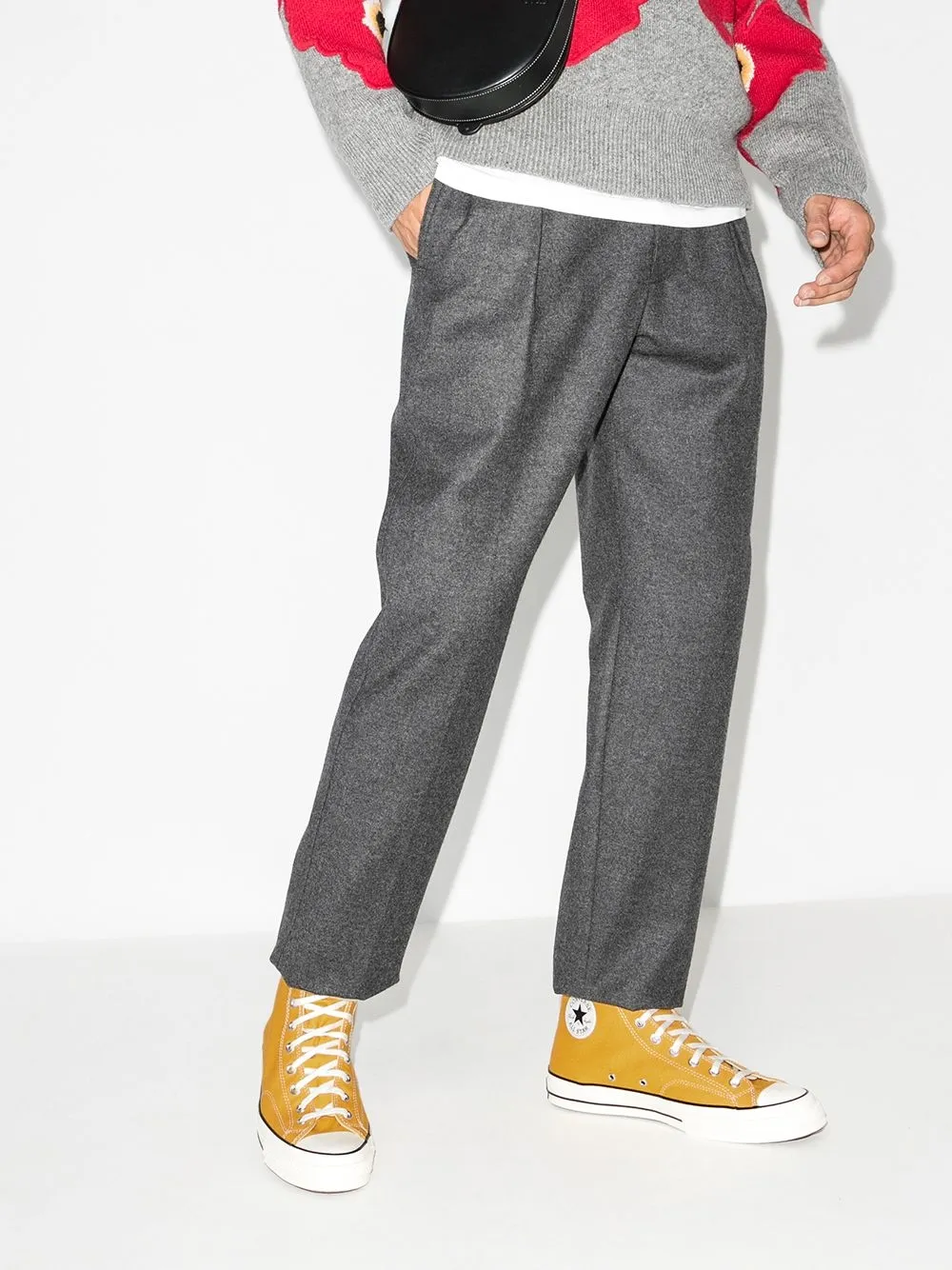 Высокие желтые кеды Chuck Taylor 70 из парусины от Converse. Закругленный контрастный носок, прошитые вставки, шнуровка спереди, люверсы, логотип снаружи, логотип на тыльной стороне, плоская резиновая подошва.