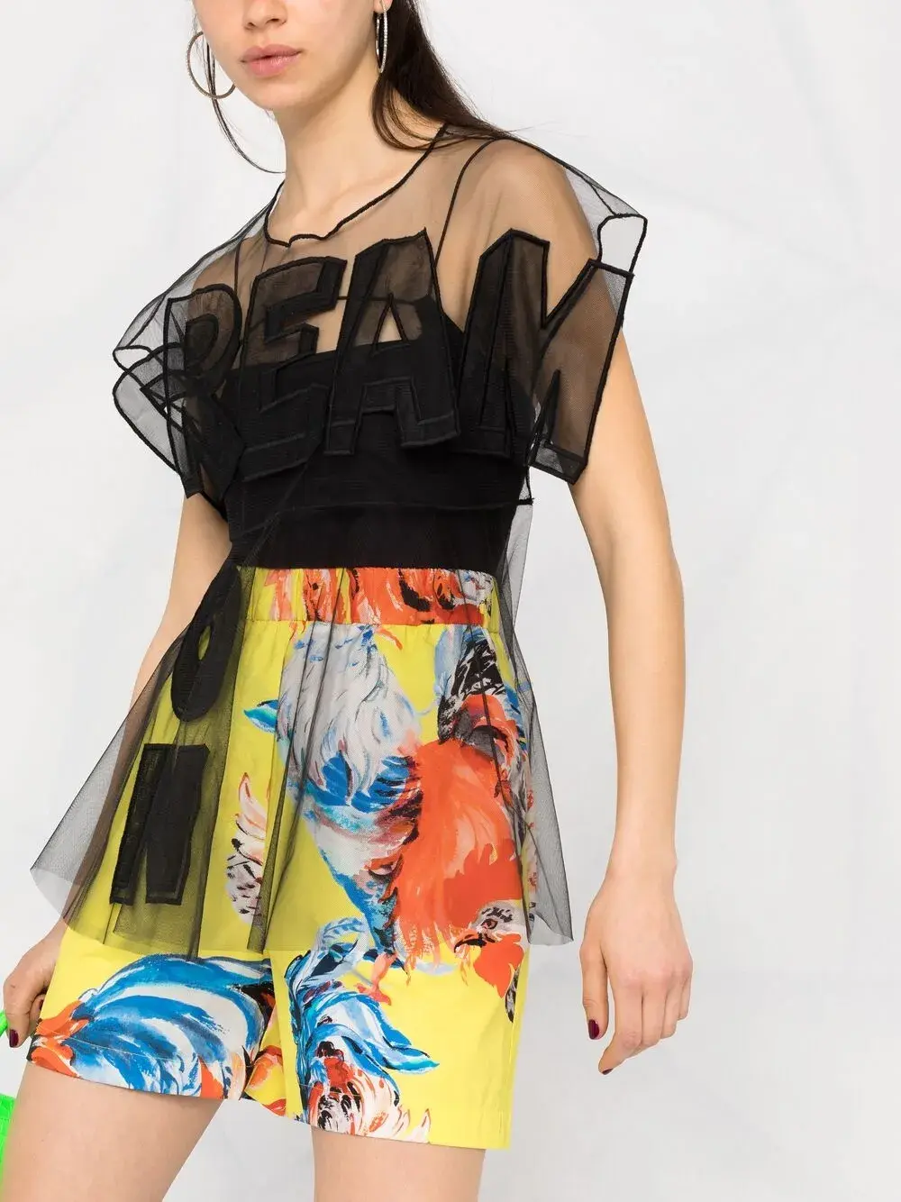 Эластичный пояс, два прорезных кармана по бокам и задние карманы с листочкой. Цвет: желтый.