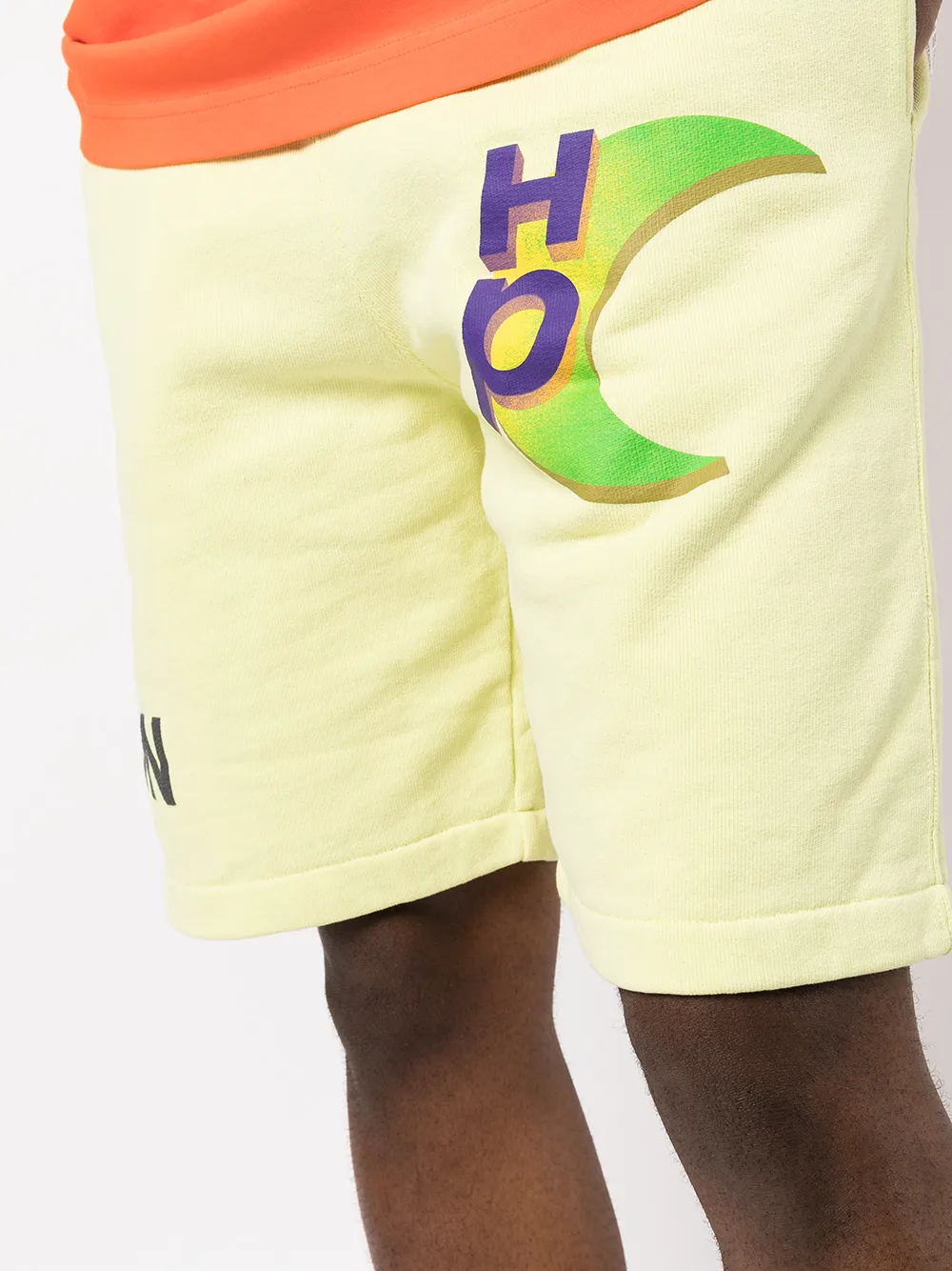 Графичный принт спереди, логотип сбоку, нашивка с логотипом спереди, эластичный пояс, два вшитых кармана по бокам, карман на пуговице сзади и длина до бедер. Цвет: желтый.