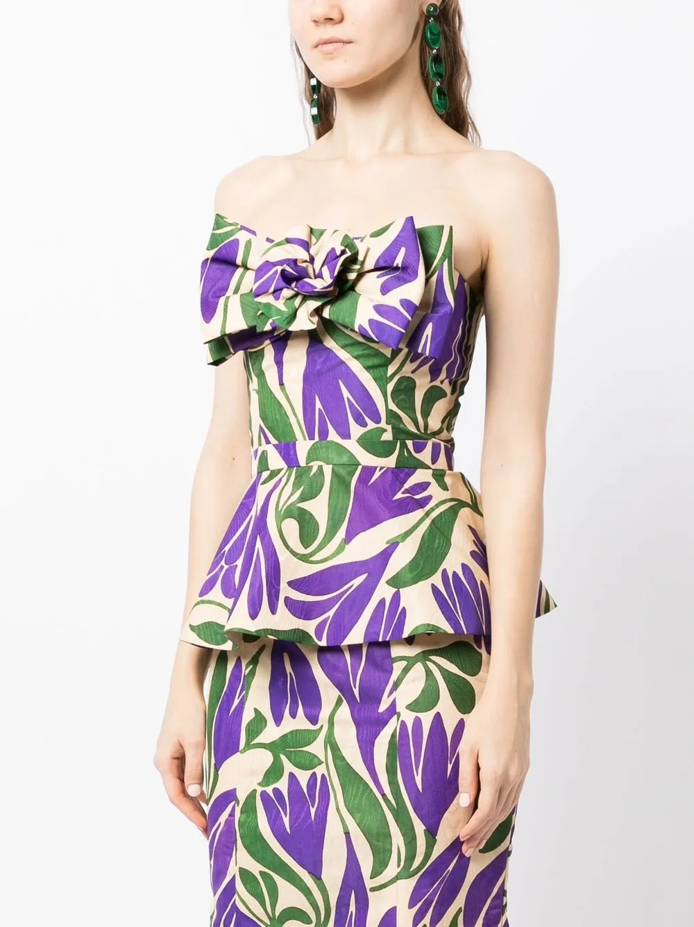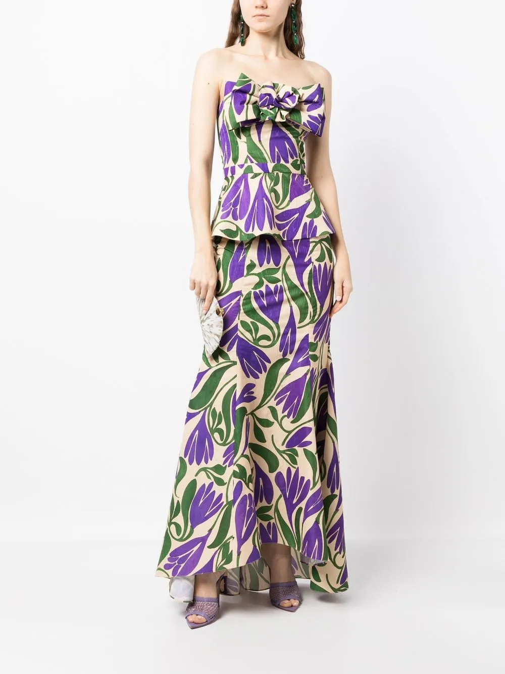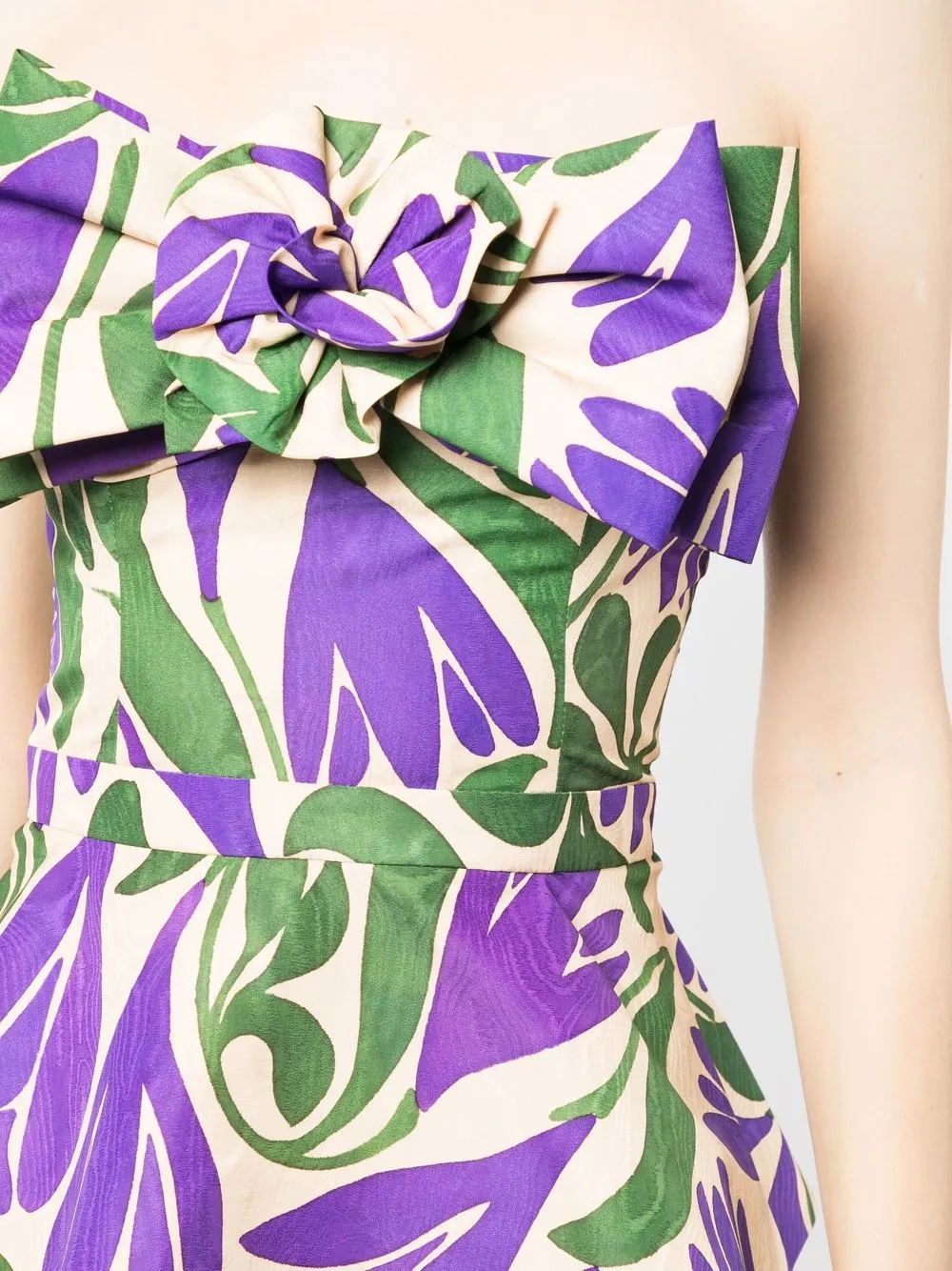 Разноцветный, сплошной цветочный принт, бант, открытые плечи, без рукавов и баска.