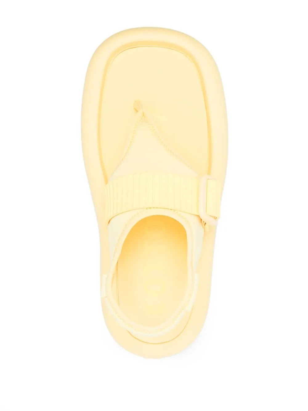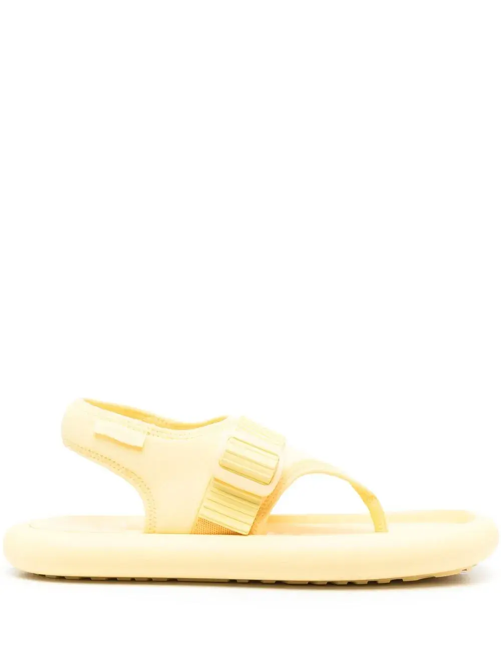 Расцветка Citrin Pale Yellow, стелька с логотипом, Т-образный ремешок, застежка на липучке спереди и плоская резиновая подошва. Ответственный выбор: Этот товар как минимум на 50% состоит из переработанных или повторно использованных материалов.