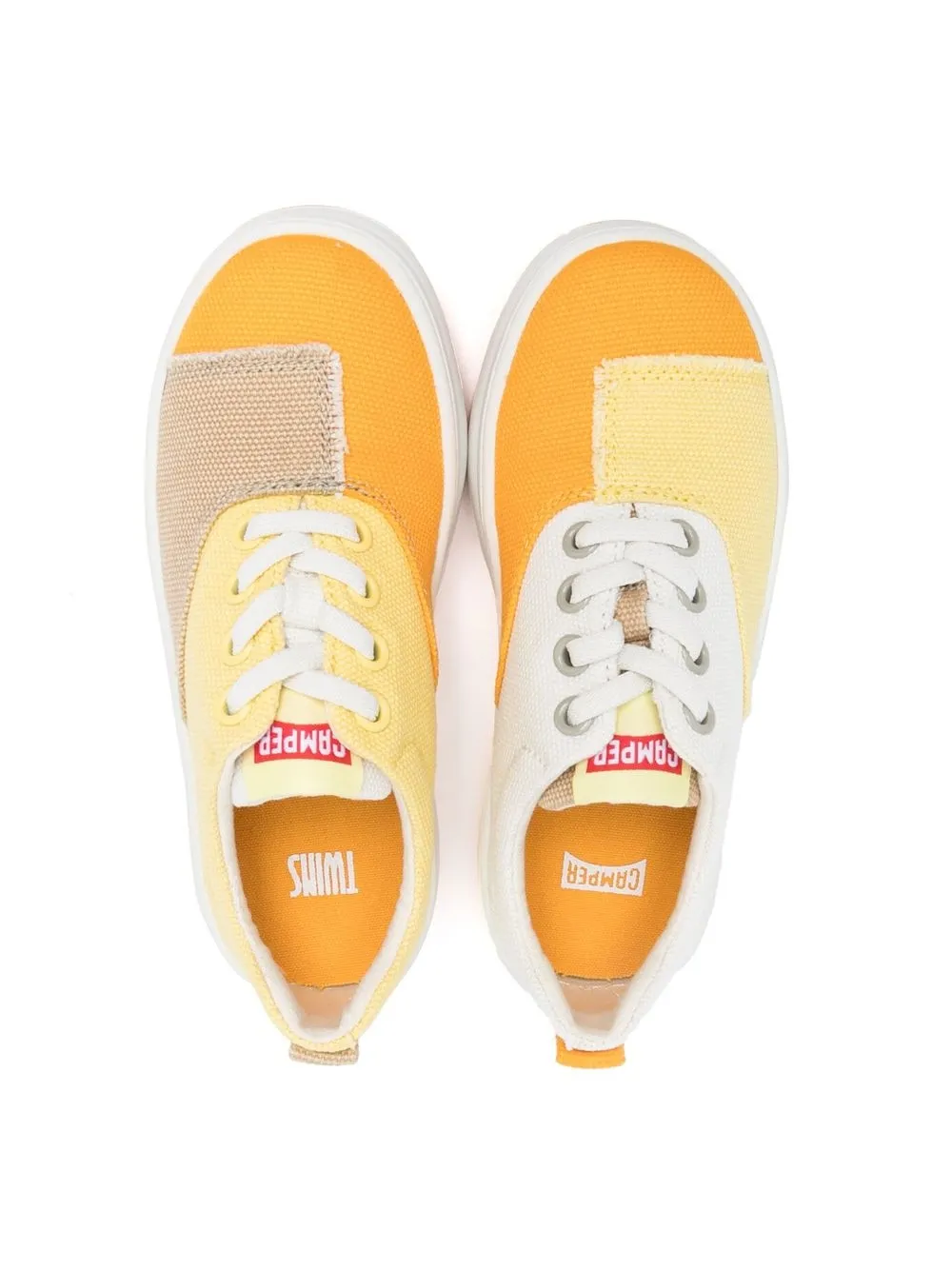 Подробнее о товаре: Белый, желтый, оранжевый, переработанный хлопок, шнуровка спереди, закругленный носок, нашивка с логотипом на язычке и плоская резиновая подошва. Этот товар как минимум на 50% состоит из переработанных или повторно использованных материалов. Узнать больше о том, какие товары получают отметку «Ответственный выбор», можно из материала «Как мы оцениваем экологичность и этичность».