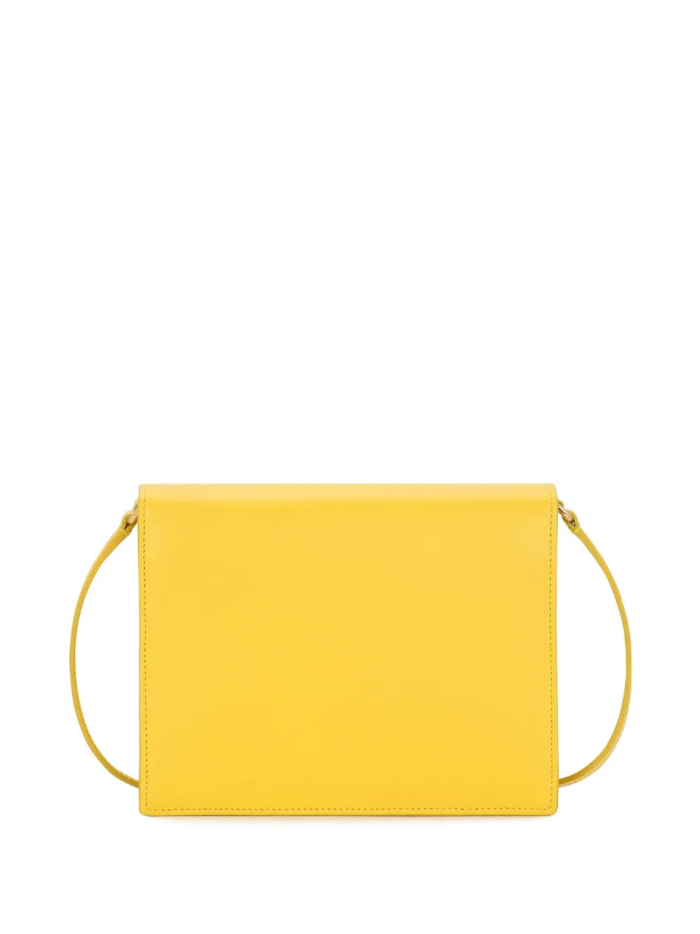 Желтый цитрон, телячья кожа, съемный регулируемый ремень на плечо, откидной клапан на магните, тисненый логотип спереди, основное отделение и внутренний карман на молнии.