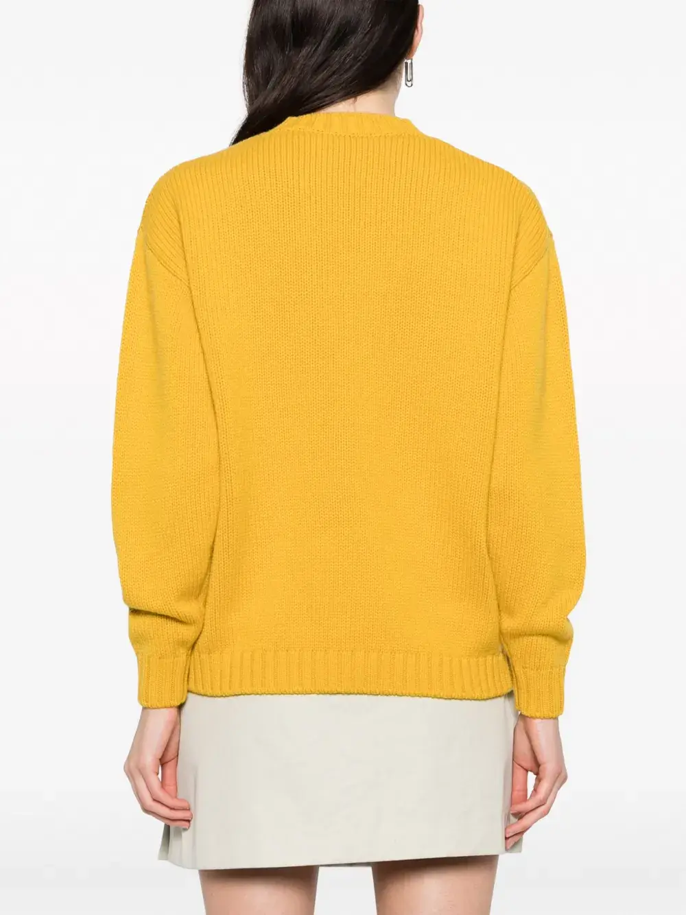 Смесь шерсти и хлопка, трикотажный материал и логотип в технике интарсия.
