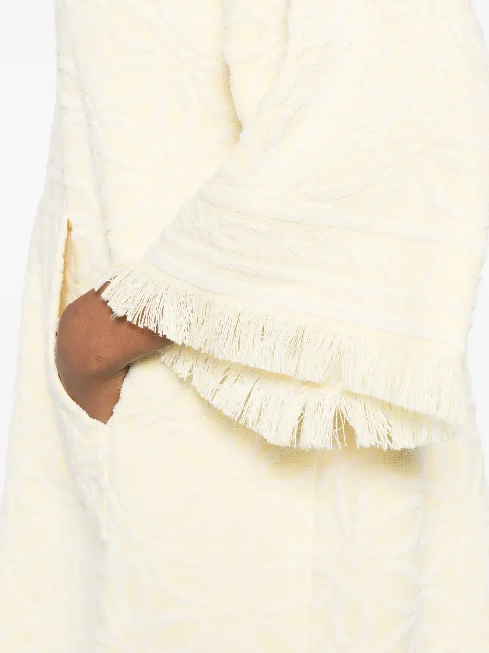 Желтый V-образный вырез, классический капюшон, длинные рукава, бахрома по краю