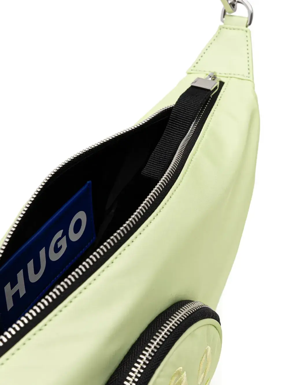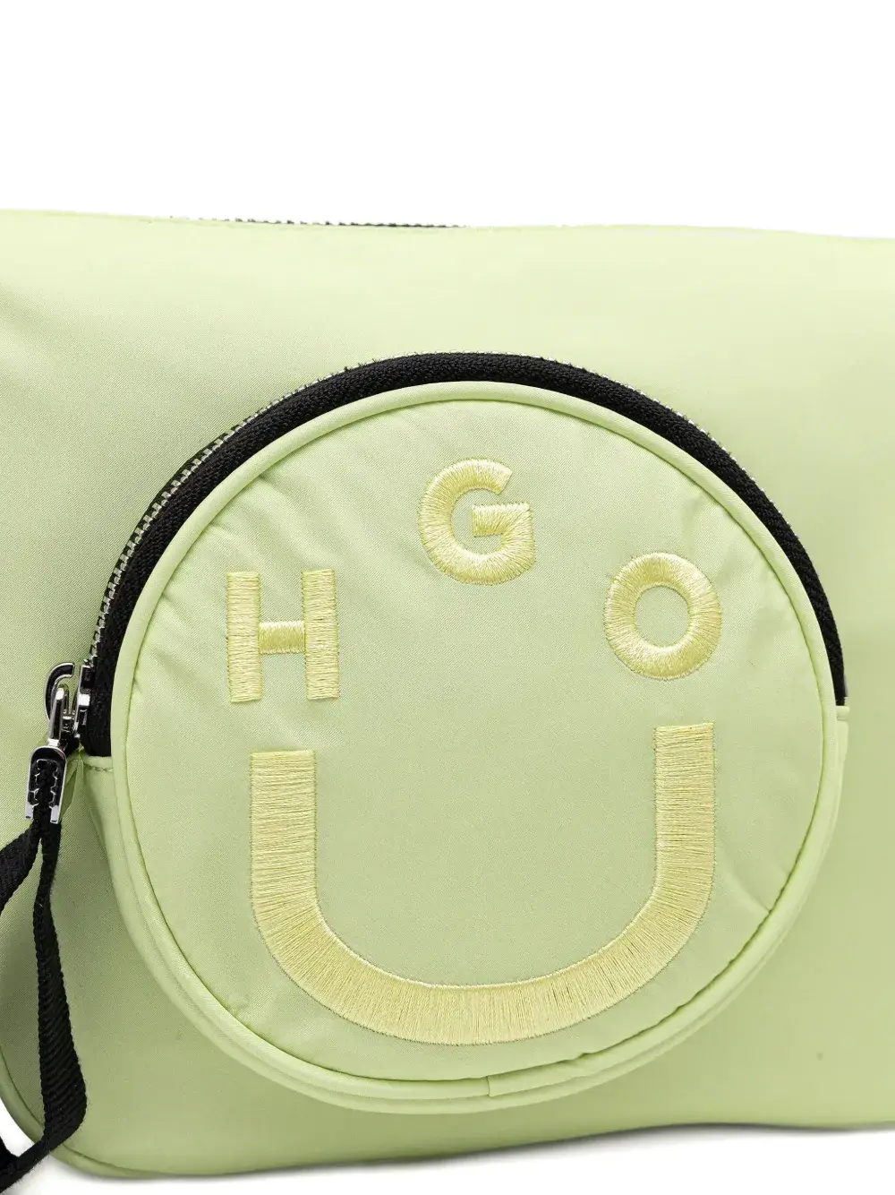 Зеленовато-желтый вышитый логотип Happy Hugo, застежка-молния, регулируемый ремешок, съемный ремешок, круглый карман на молнии