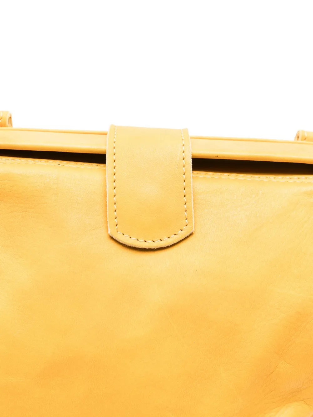 Желтая телячья кожа, клапан, застежка на пуговицы, верхняя ручка, съемный плечевой ремень
