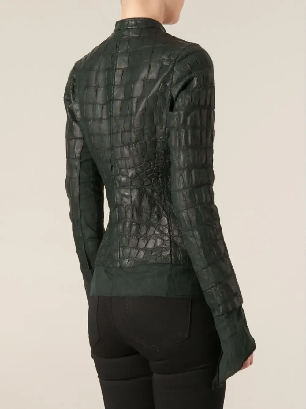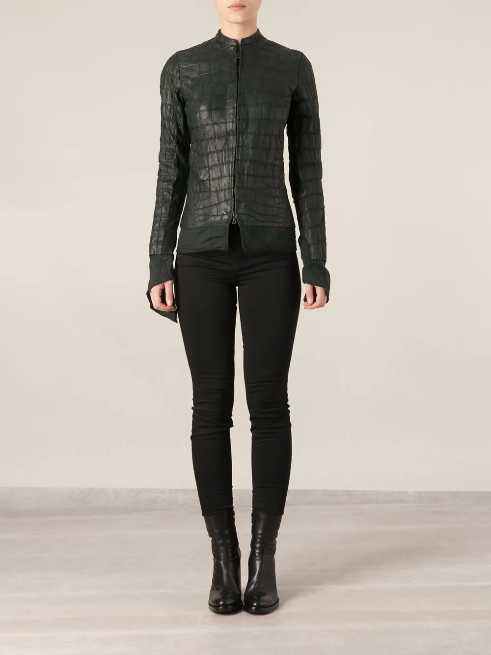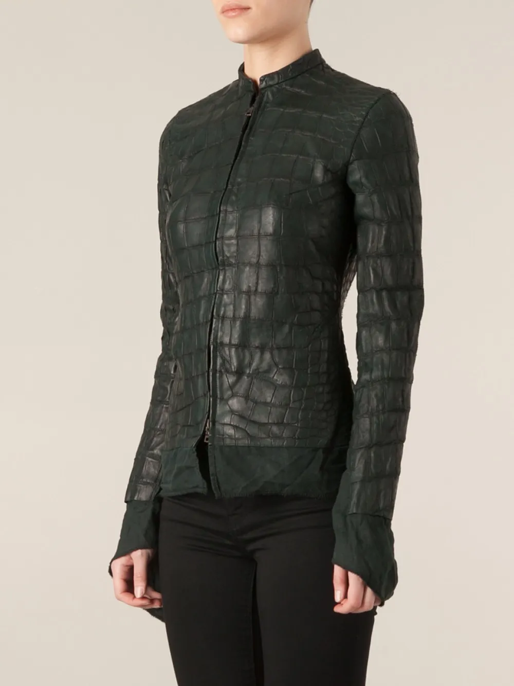 Темно-зеленый пиджак 'Affamee' из кожи аллигатора от Isaac Sellam Experience. Пожалуйста, обратите внимание, что эта вещь не может быть отправлена за пределы ЕС.