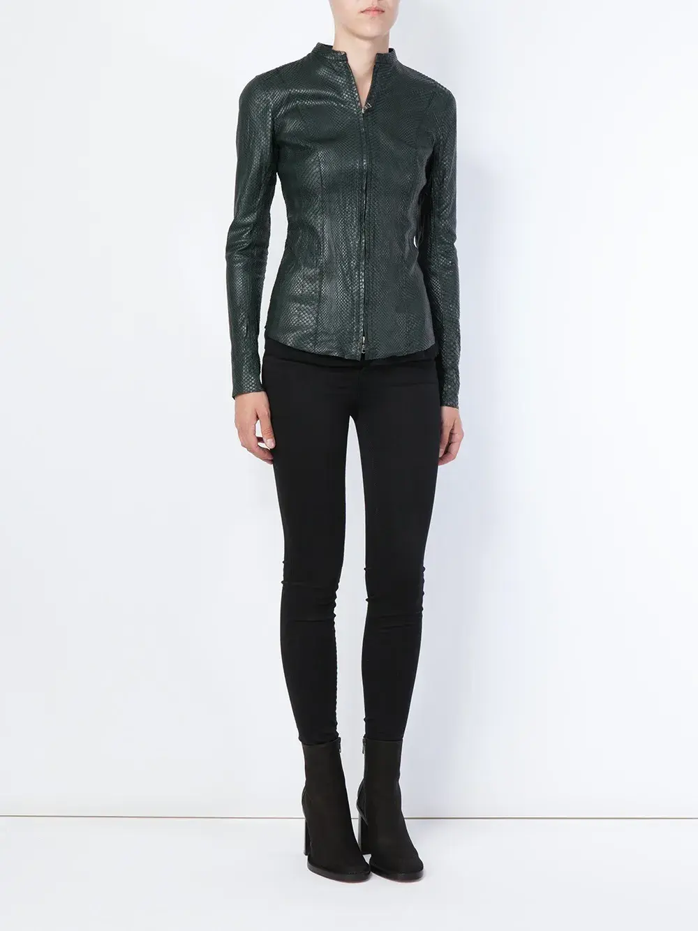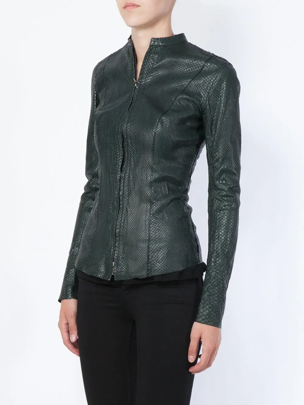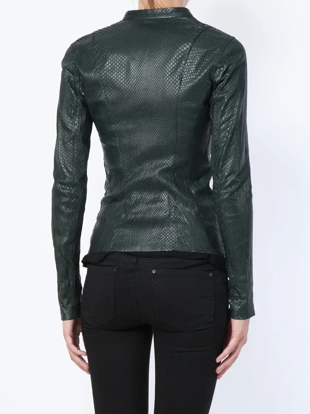 Темно-зеленая куртка 'Instinct' из змеиной кожи от Isaac Sellam Experience. Пожалуйста, обратите внимание, что эта вещь не может быть отправлена за пределы ЕС.