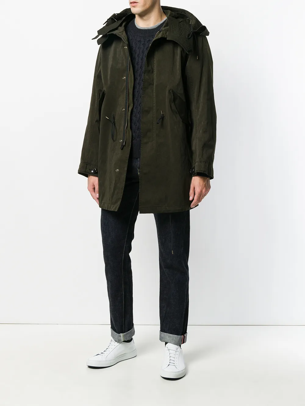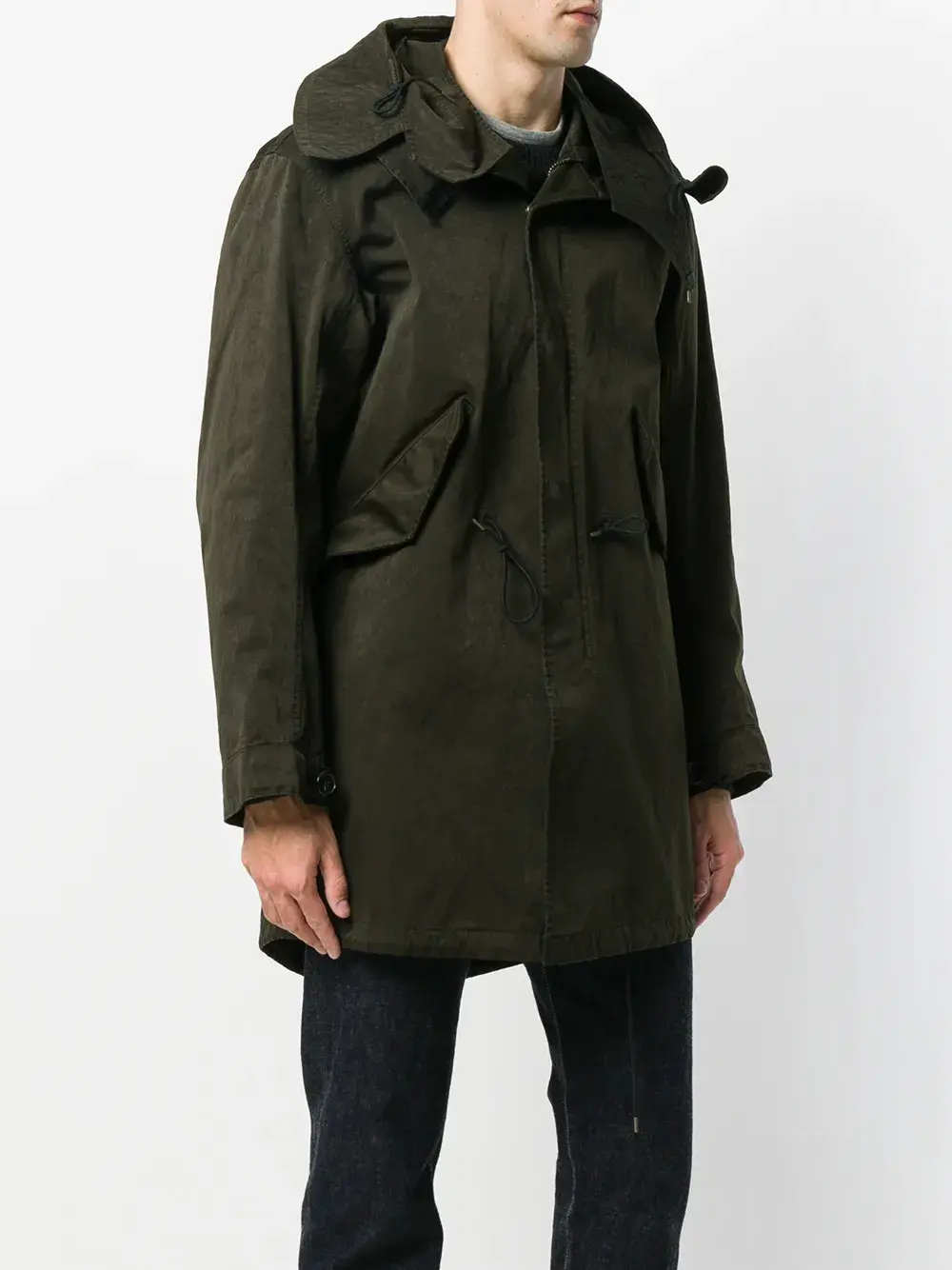 Темно-зеленое пальто с капюшоном из хлопкового микса от Ten-C.