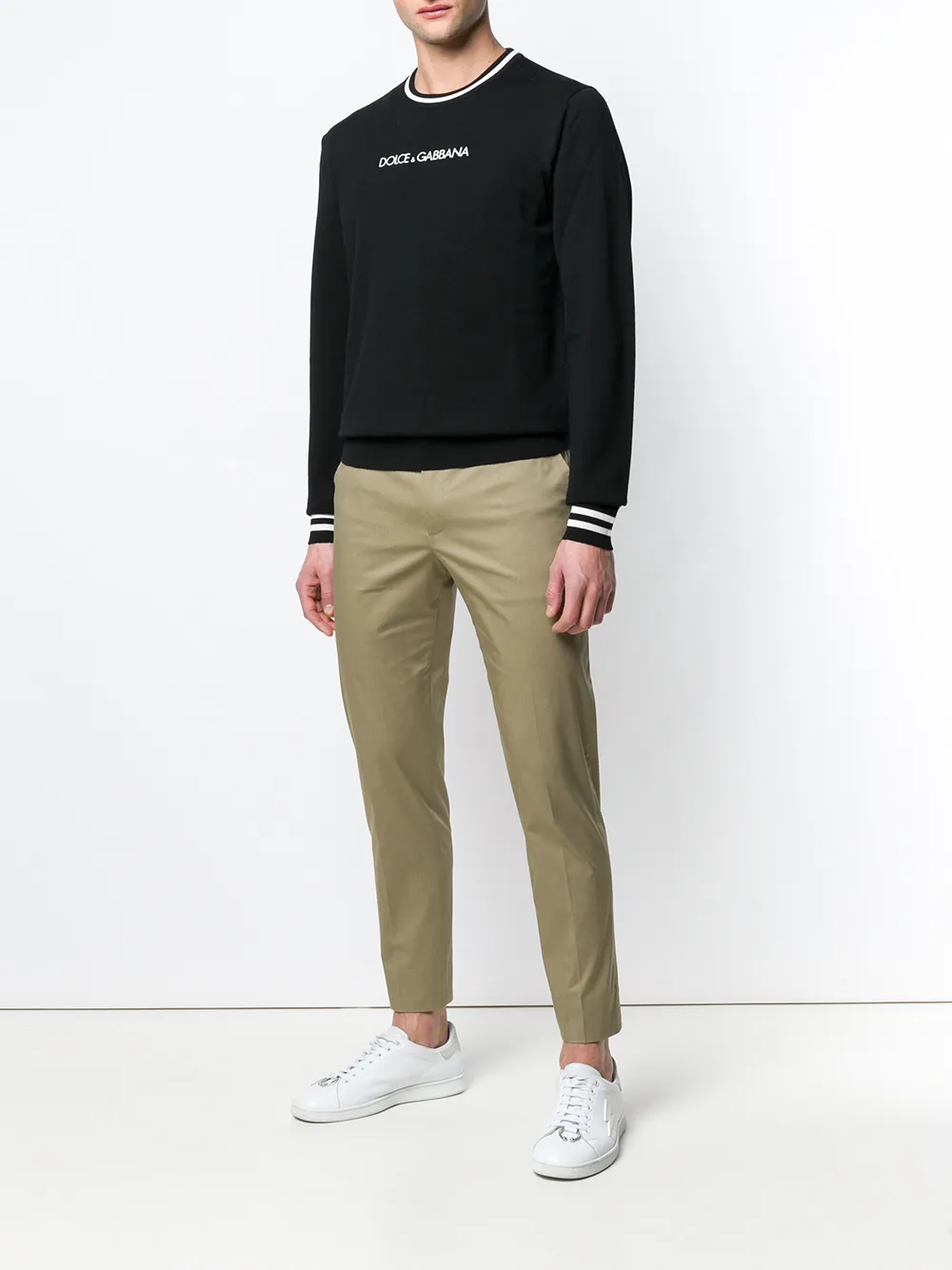 Подробнее о товаре: Доменико Дольче и Стефано Габбана знают все о классическом итальянском стиле. Культовые принты и красочные цветочные узоры украшают модели из коллекции Dolce & Gabbana, которые идеально подойдут к современному гардеробу. Среди них классические брюки чинос бежевого цвета из эластичного хлопка от Dolce & Gabbana (Дольче энд Габбана). Ширинка на молнии с пуговицей, петли для ремня, прорезные карманы по бокам и задние карманы с листочкой.