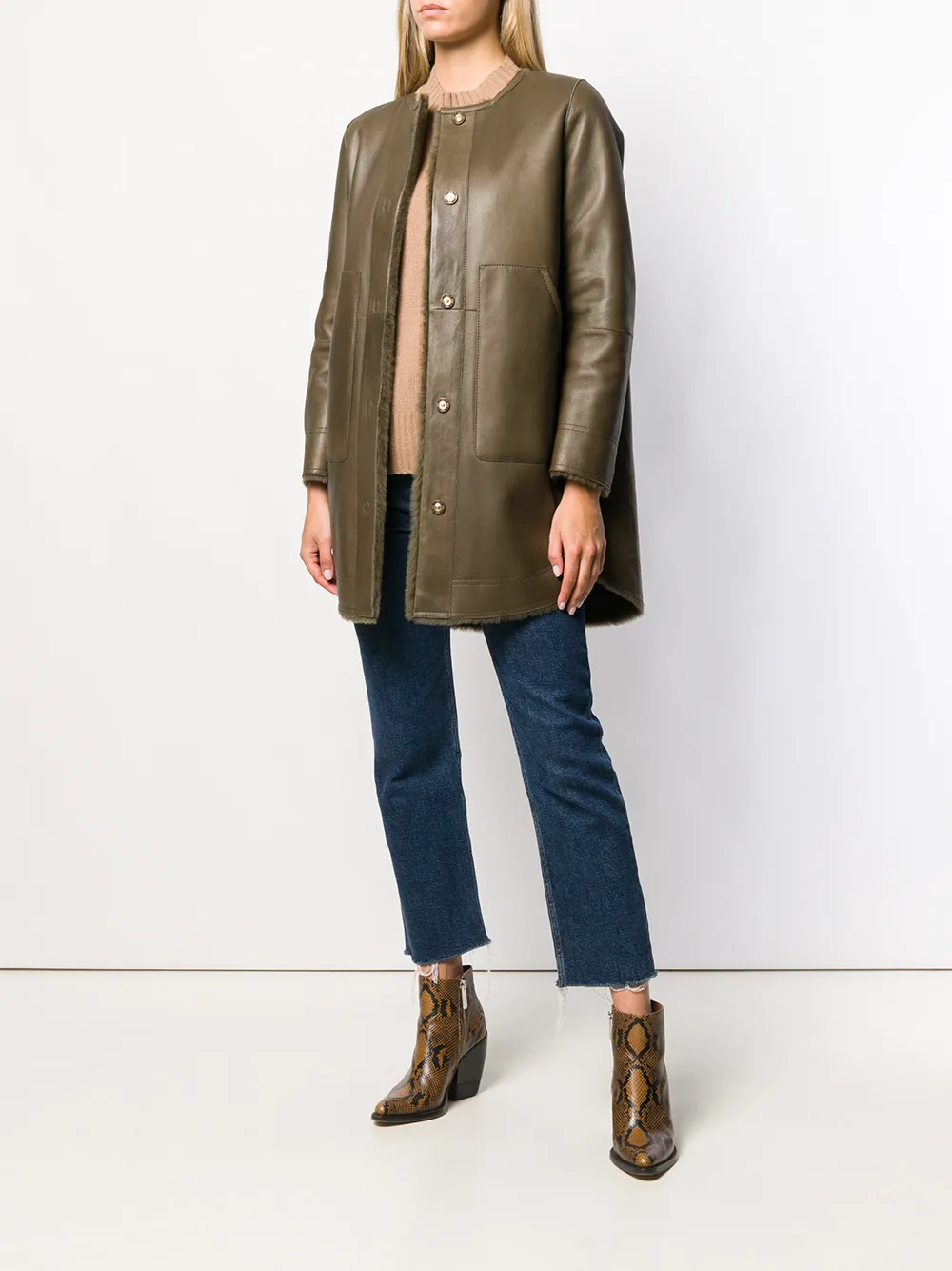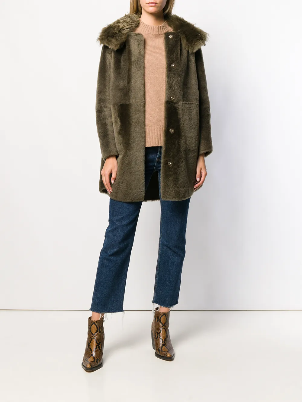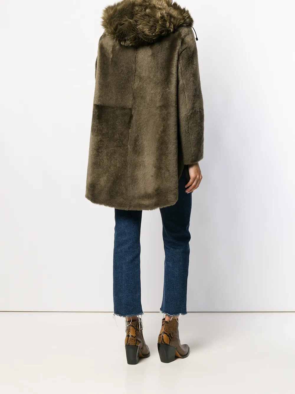 Дубленка из овчины с капюшоном YVES SALOMON, зеленый