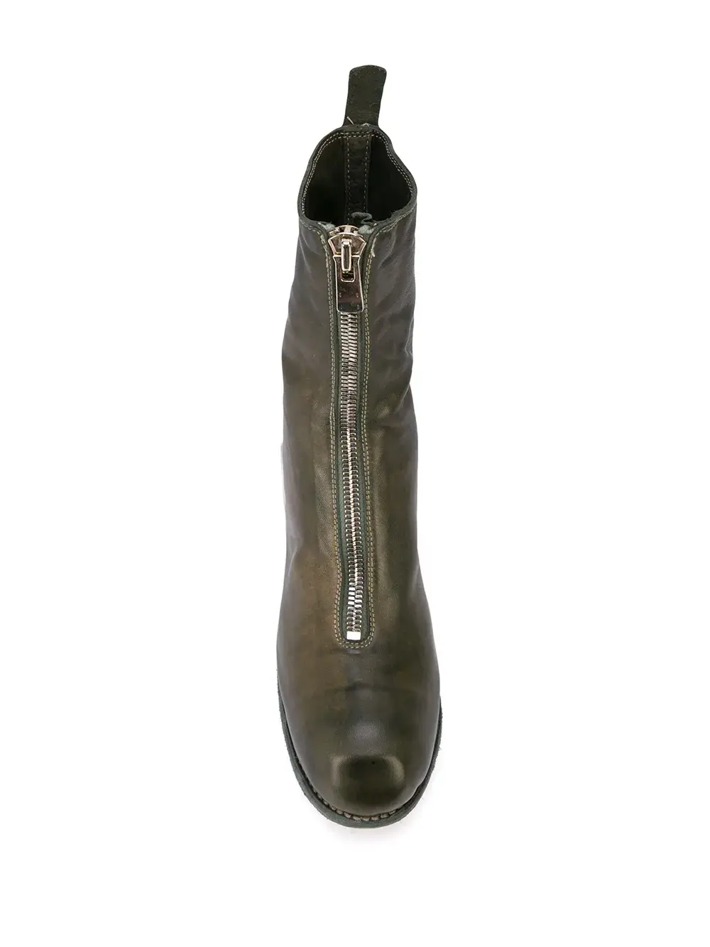Ботинки по щиколотку от Guidi. Петля для подтягивания сзади, застежка на молнии спереди, закругленный носок, массивный низкий каблук и фирменная стелька. Цвет: зеленый.